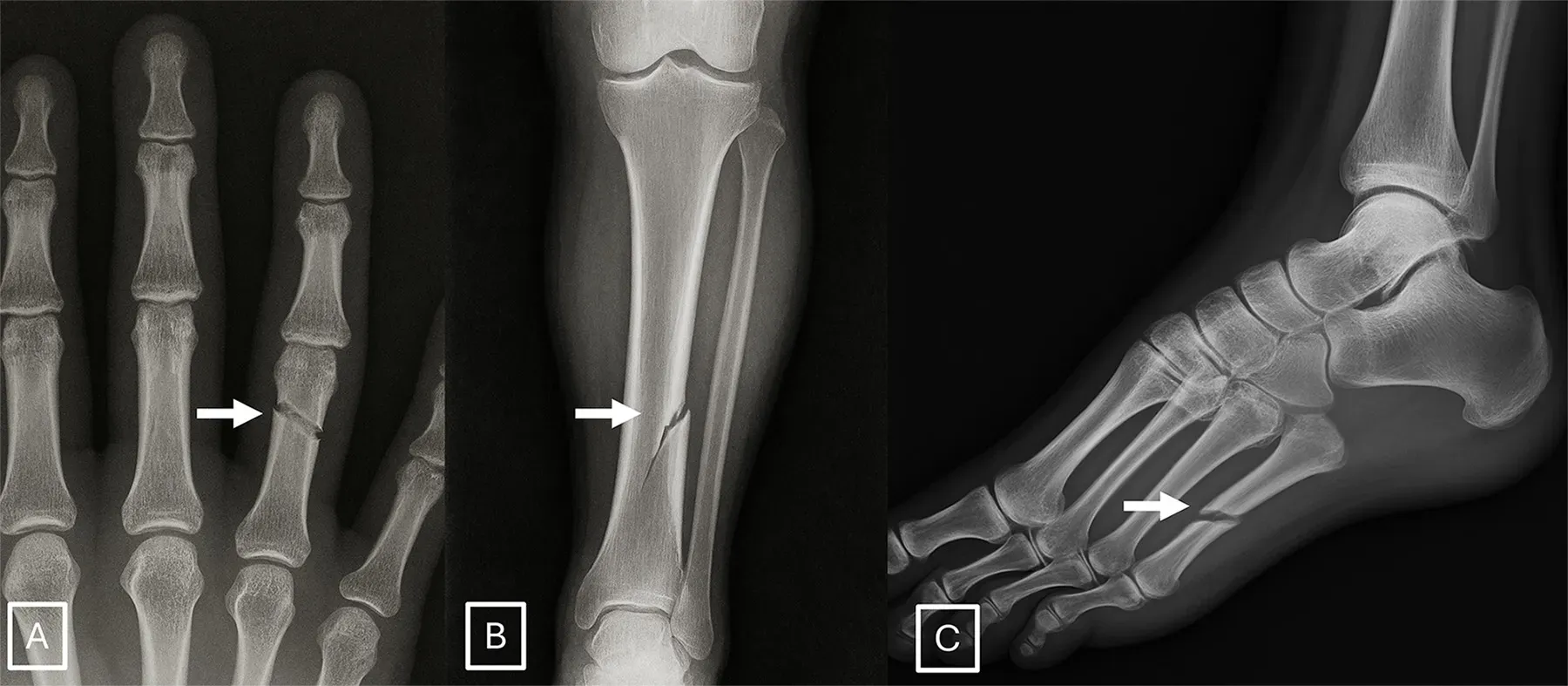 - 骨頭表面過於平滑:真實嘅骨骼邊緣通常會有自然嘅微小凹凸或不規則特徵(例如腰椎嘅 Schmorl 結節)。而 AI 畫出嚟嘅骨頭,皮質骨厚度往往均勻得唔自然,骨折線亦經常顯得太乾淨、太平滑,甚至只係出現單邊皮質骨折斷嘅不合理情況。