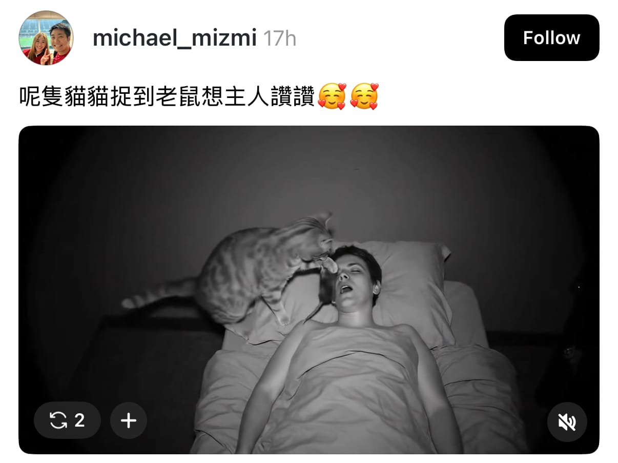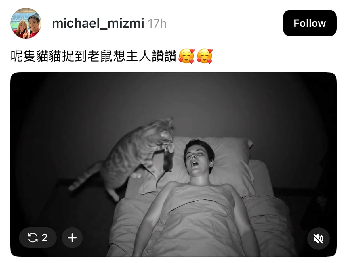 驚喜大行動:呢隻喵夜晚捉到老鼠,當「貢品」🐀 放喺瞓覺主人嘴邊,等即刻畀個五星好評!