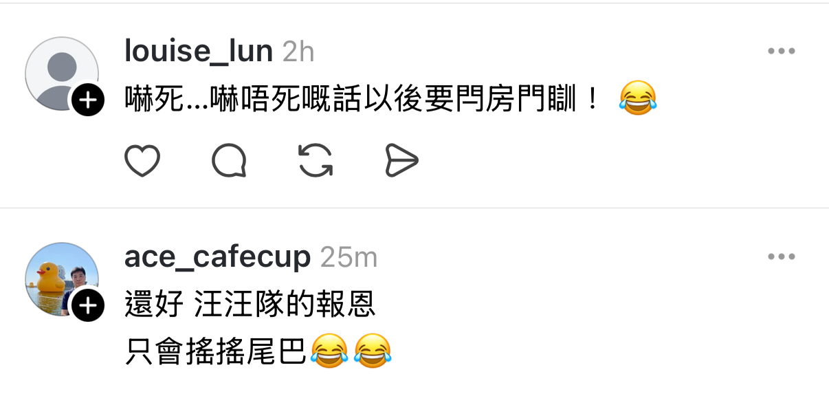 - louise_lun:「嚇死…嚇唔死嘅話以後要門房門瞓!」😳