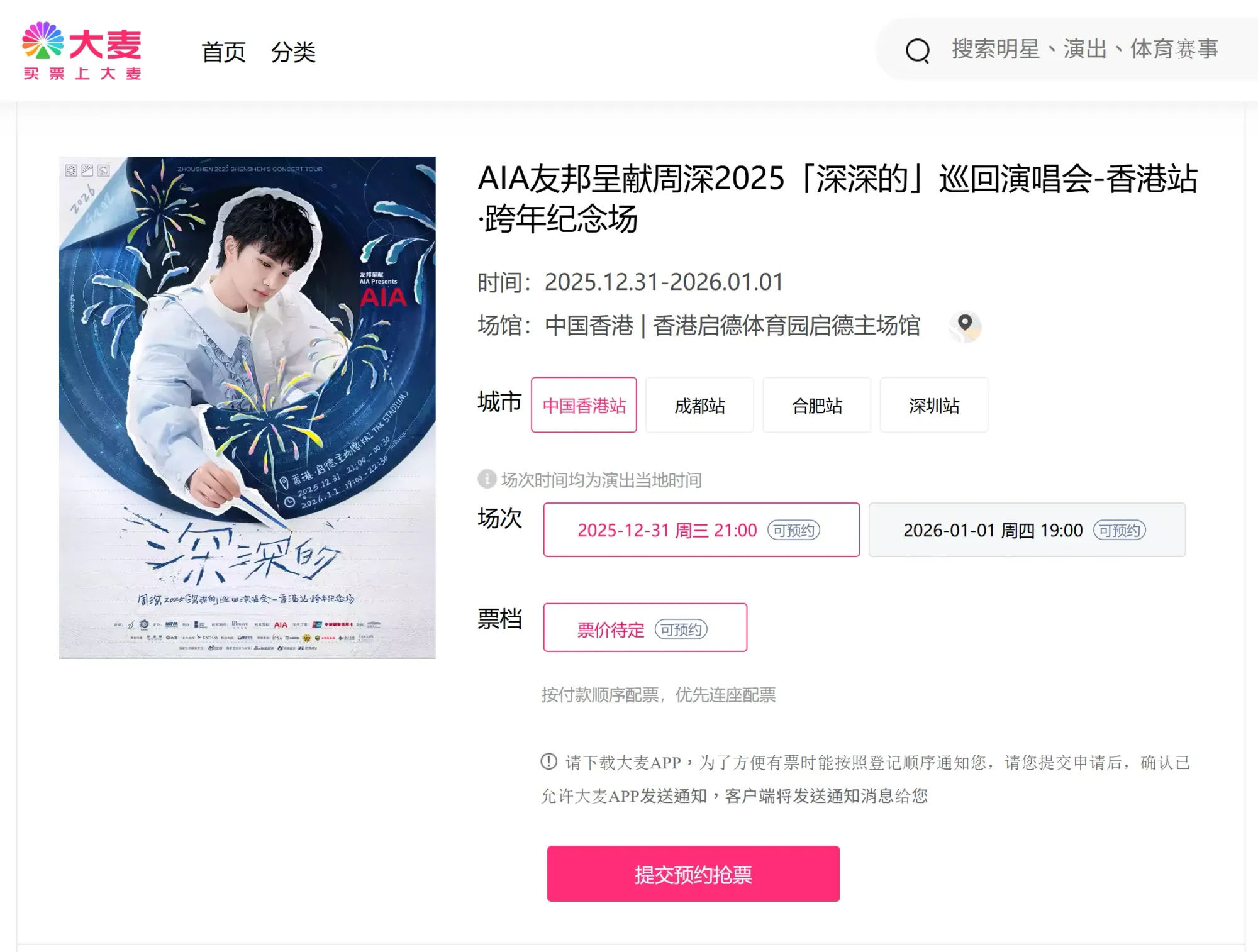 AIA友邦呈献周深2025「深深的」巡回演唱会-香港站·跨年纪念场【网上订票】- 大麦网
