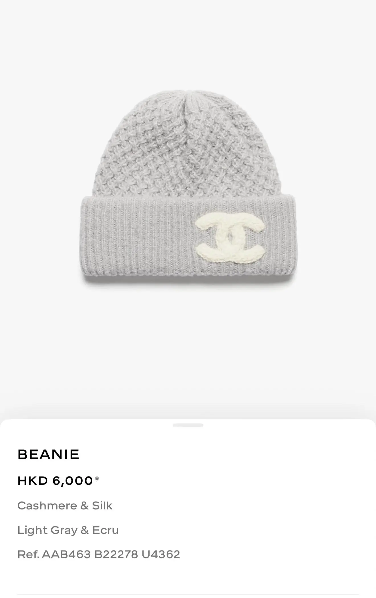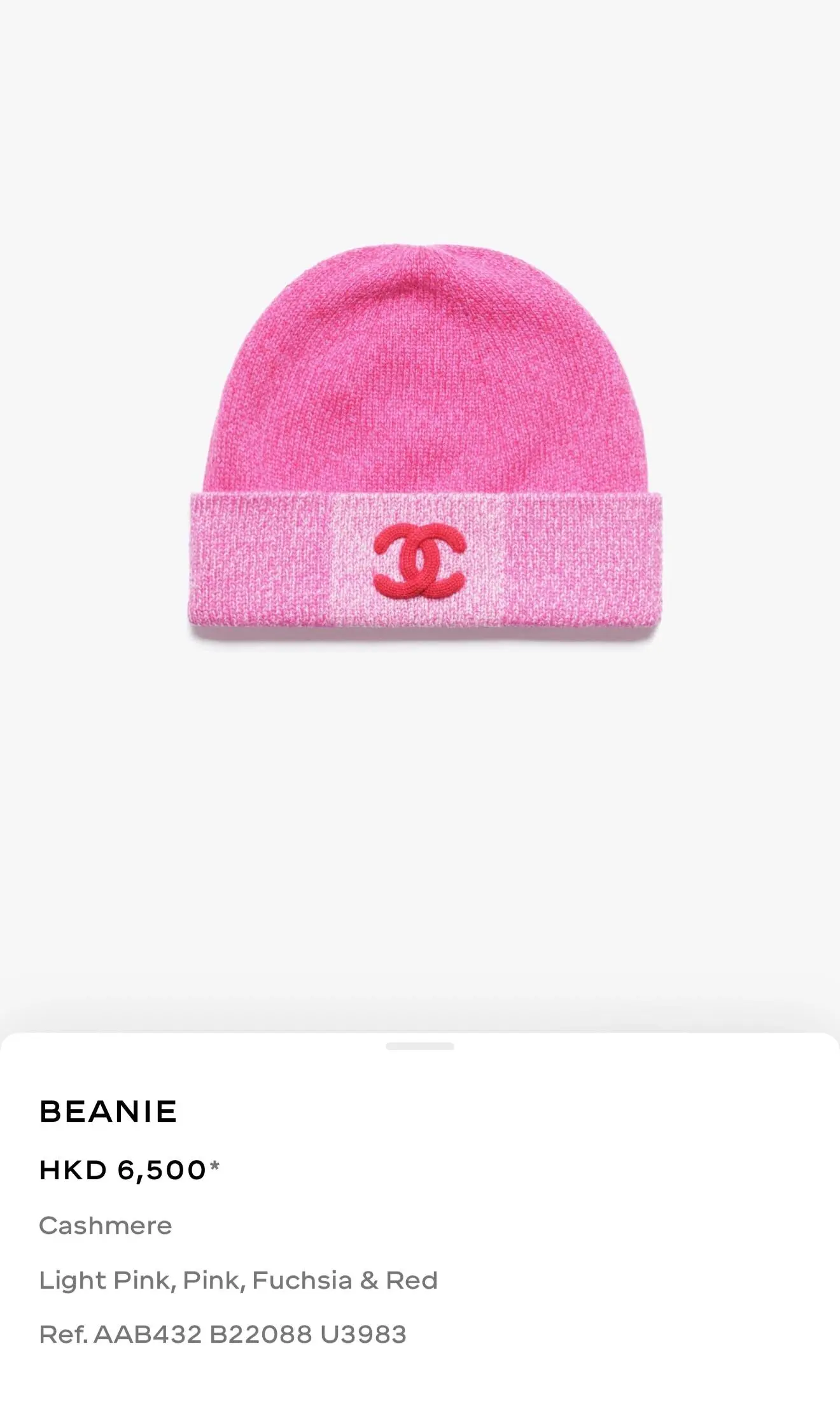 CHANEL 25K 帽款 Beanies & Hats價格參考。(資料來源:CHANEL官方網站)
