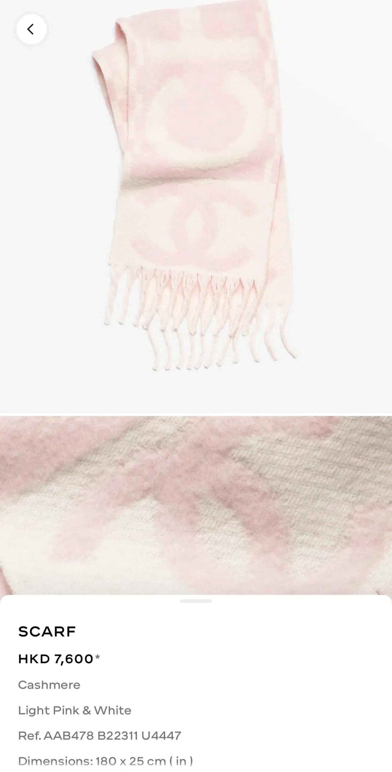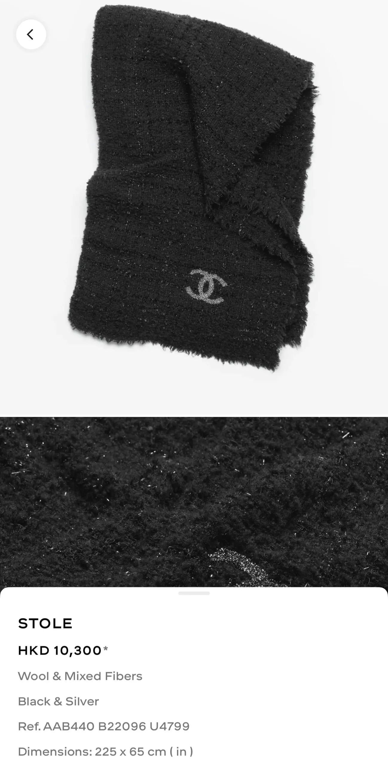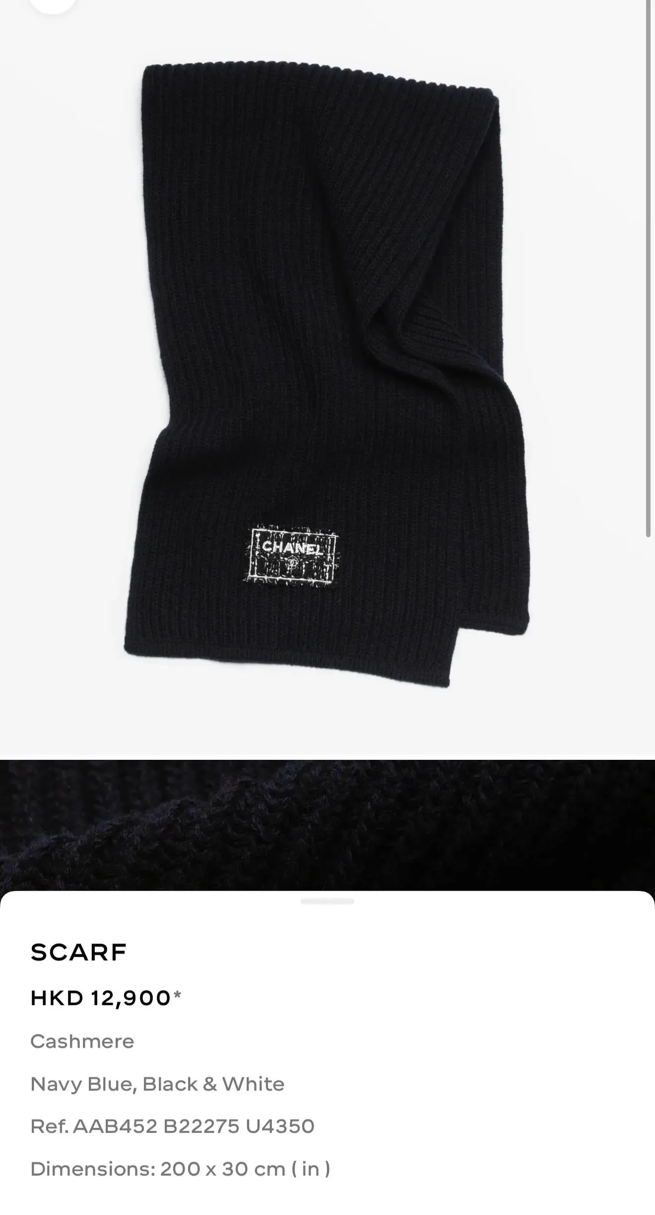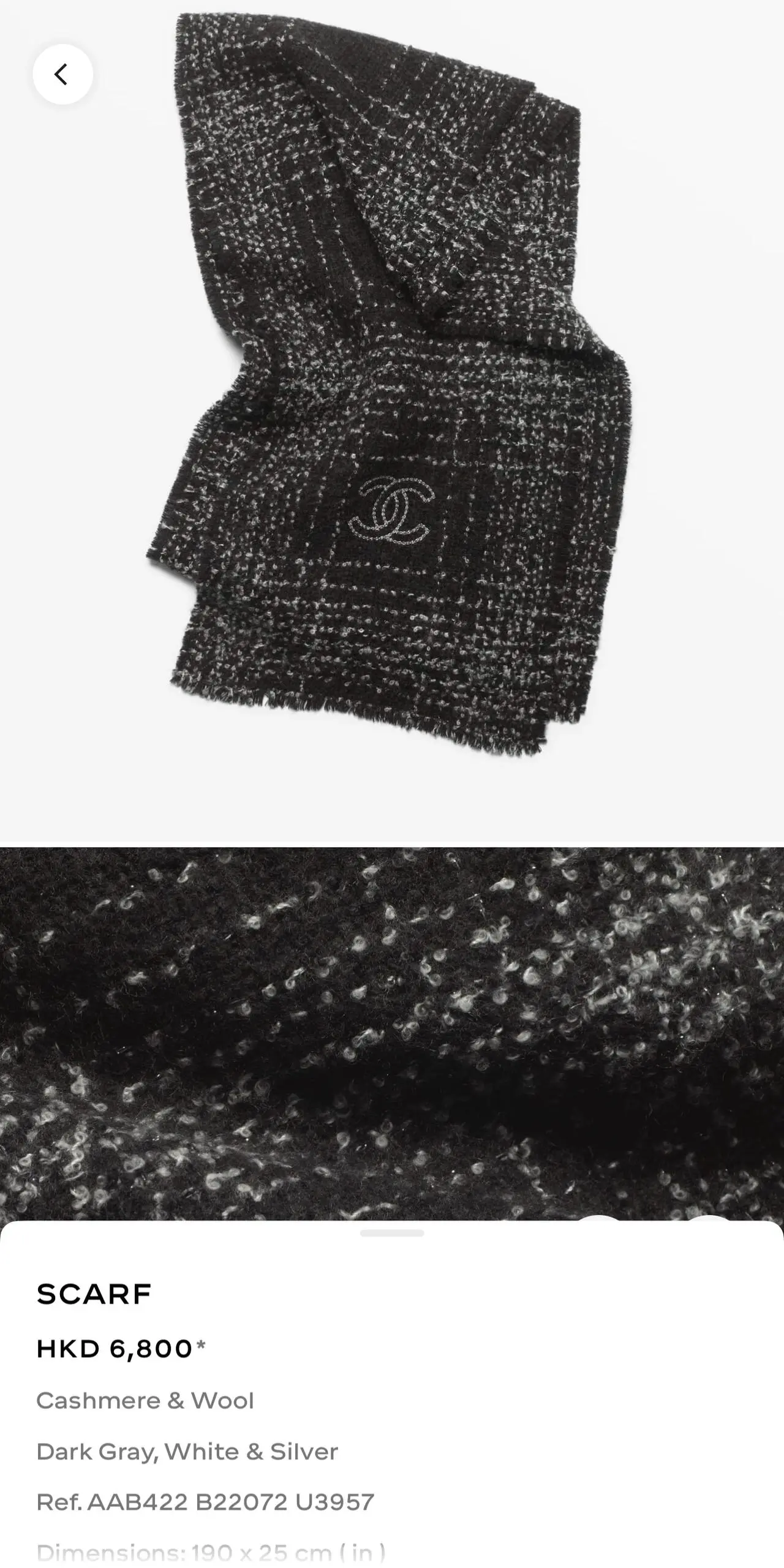 CHANEL 25K 頸巾 Scarves價格參考。(資料來源:CHANEL官方網站)