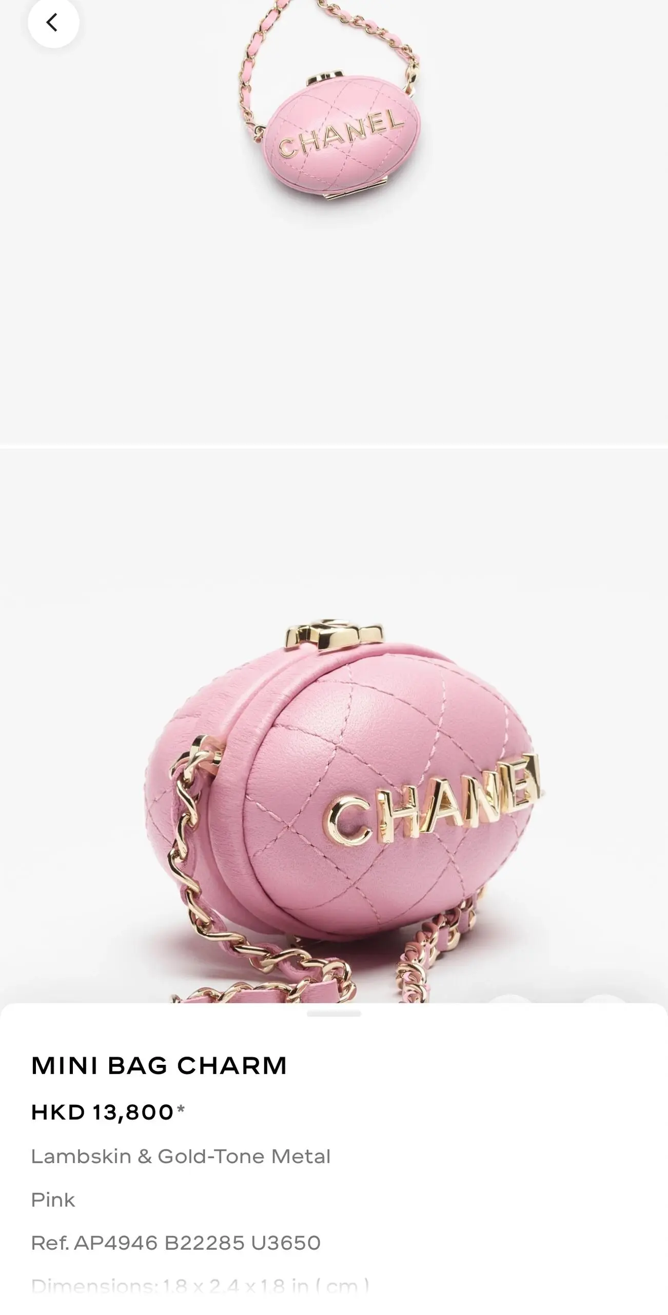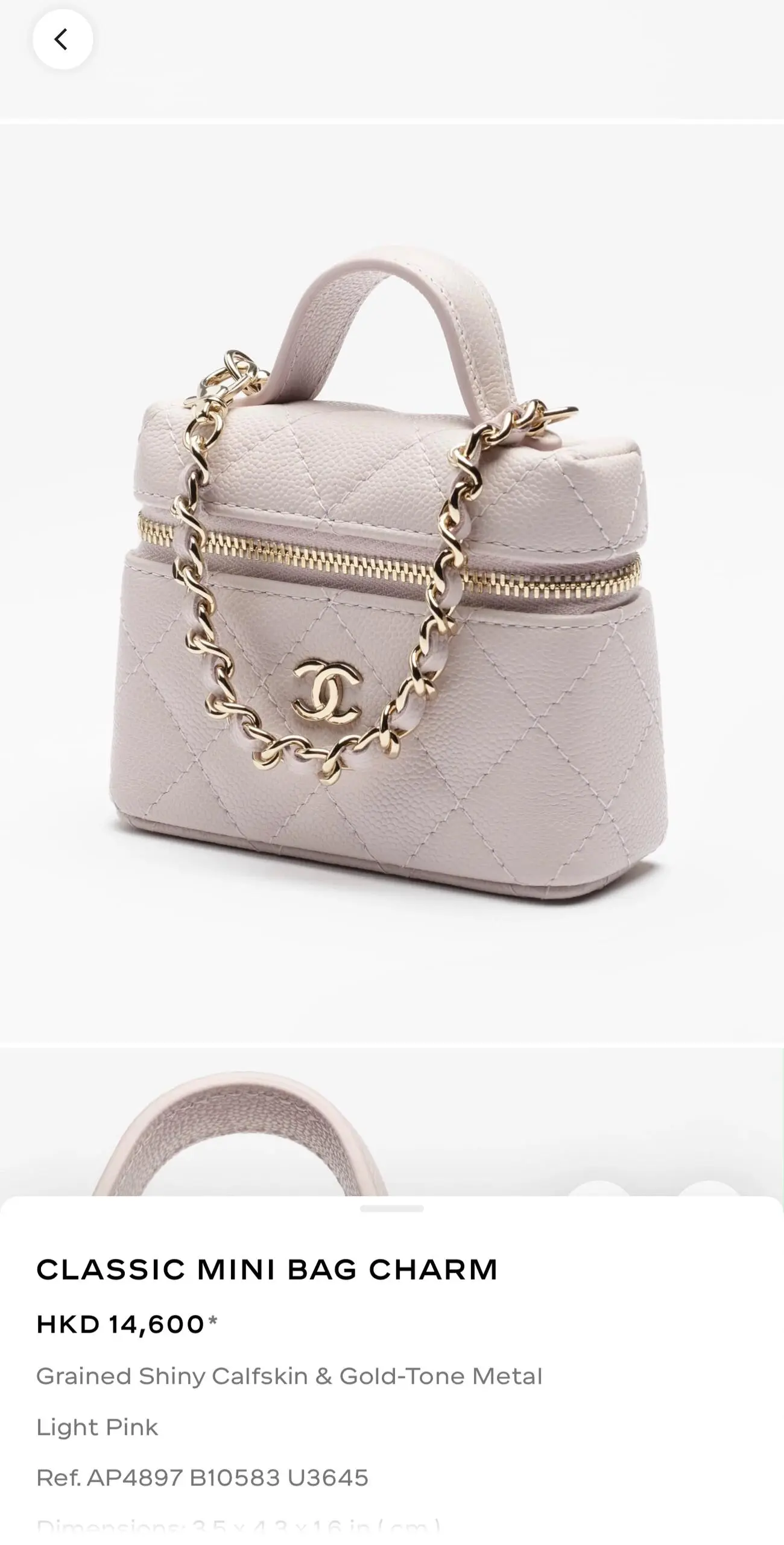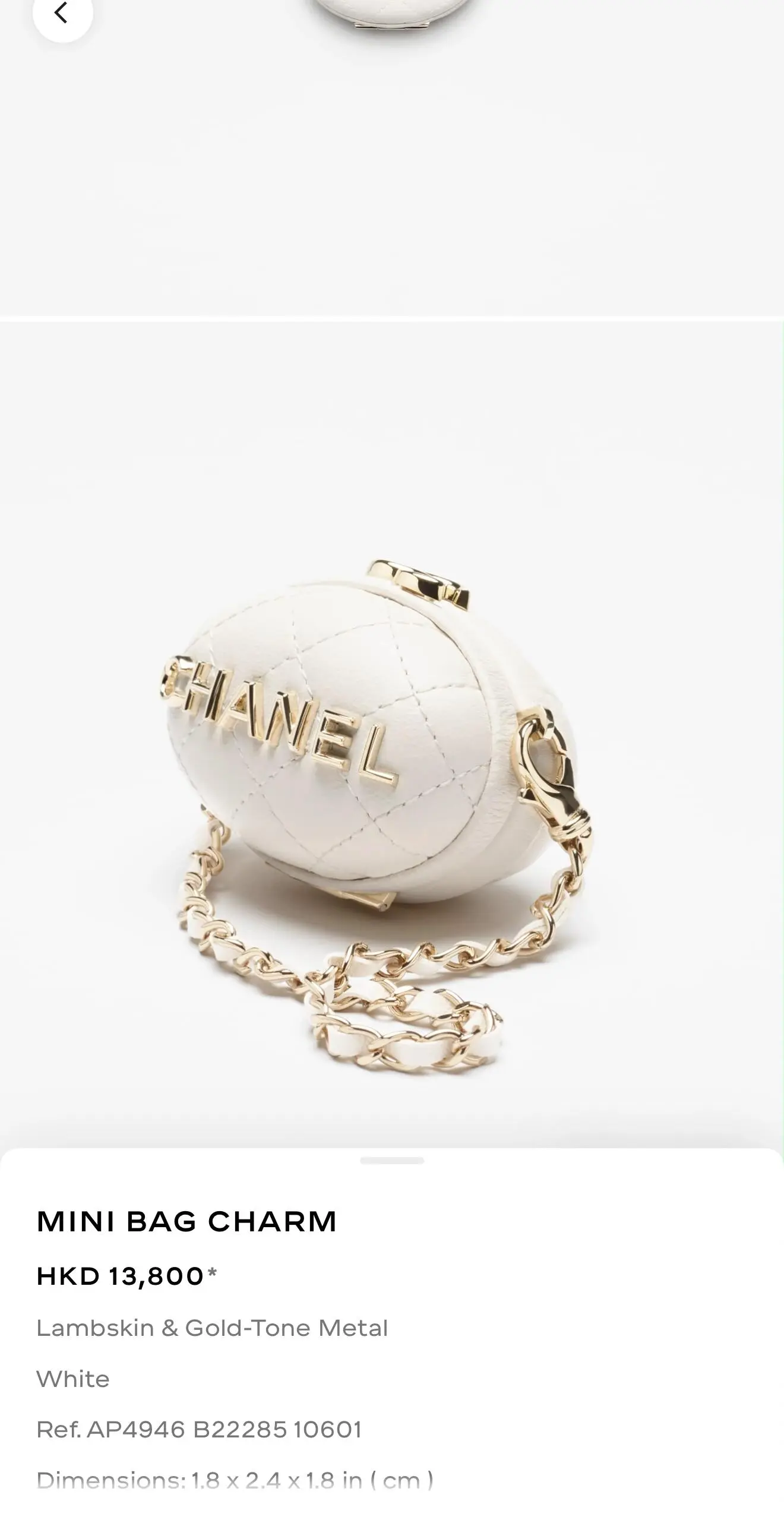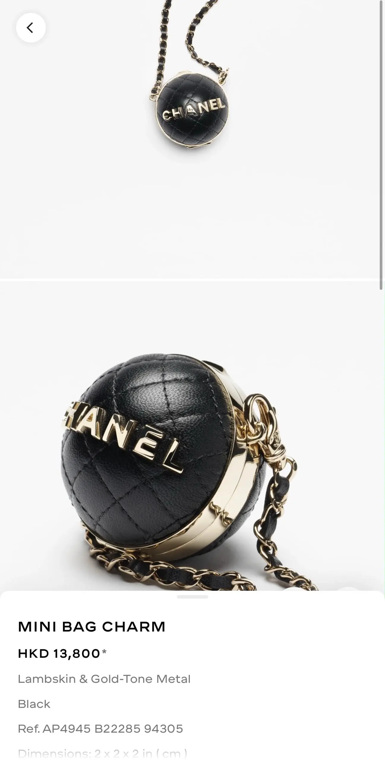 模特兒上身示範 + 價格參考:Mini bag charm。(資料來源:CHANEL官方網站)