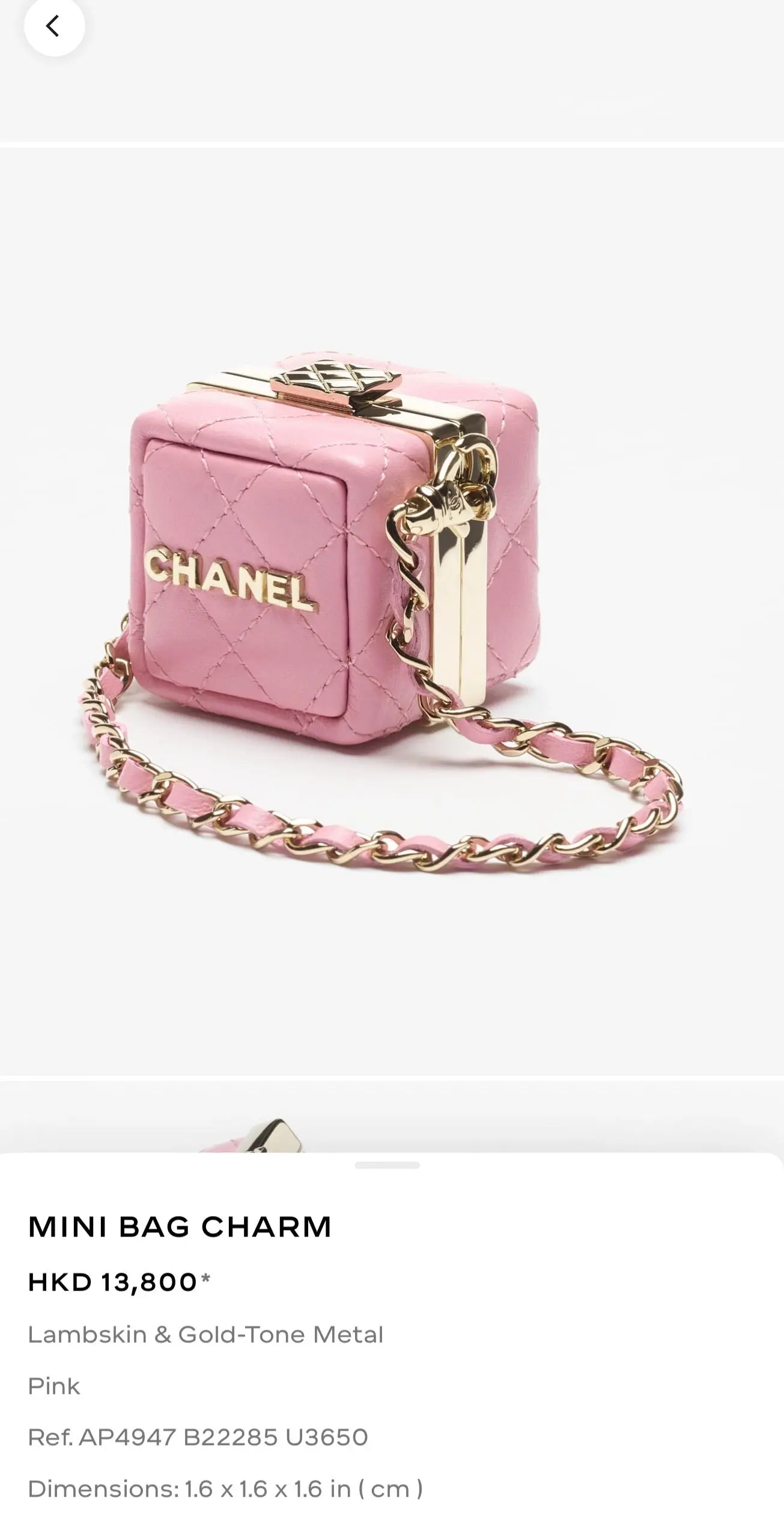 模特兒上身示範 + 價格參考:Mini Bag Charm。(資料來源:CHANEL官方網站)