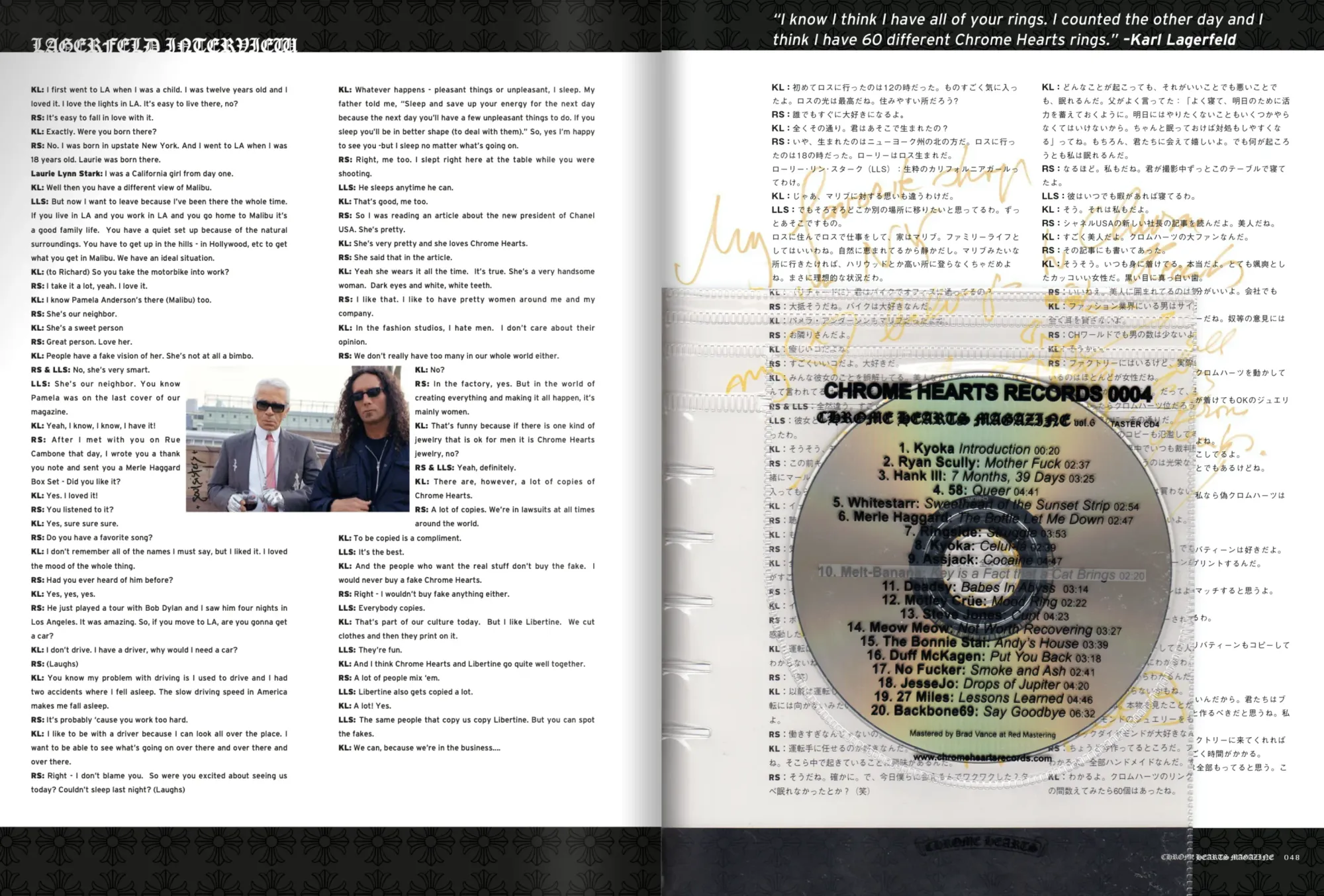 Karl Lagerfeld 於 Chrome Hearts 官方刊物中提及其私人收藏多枚 Chrome Hearts 銀戒