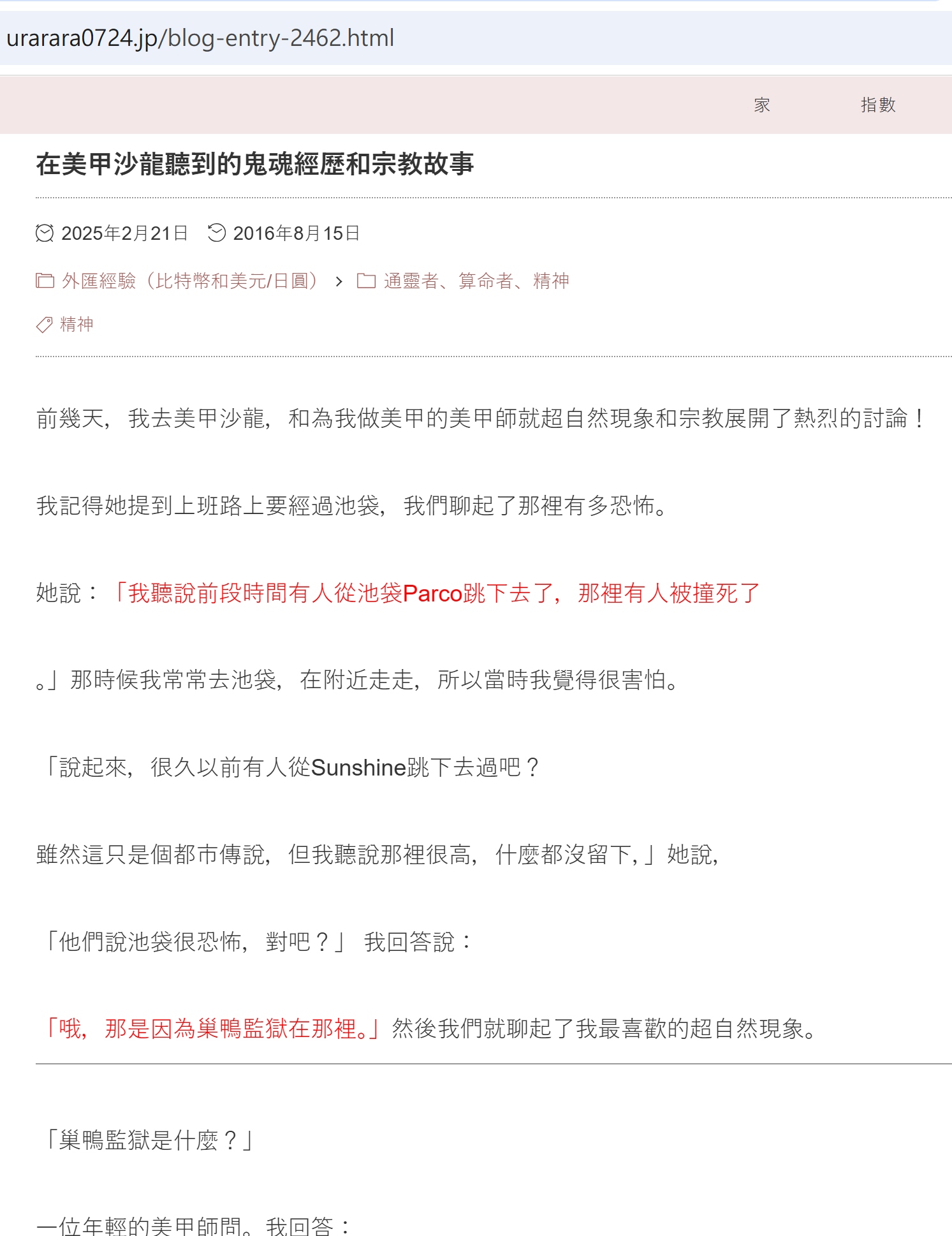 - 有日本網民喺社交平台分享,話佢前幾日去美甲沙龍整指甲,同美甲師傾開靈異話題,結果一講到池袋,大家即刻毛管戙晒!
