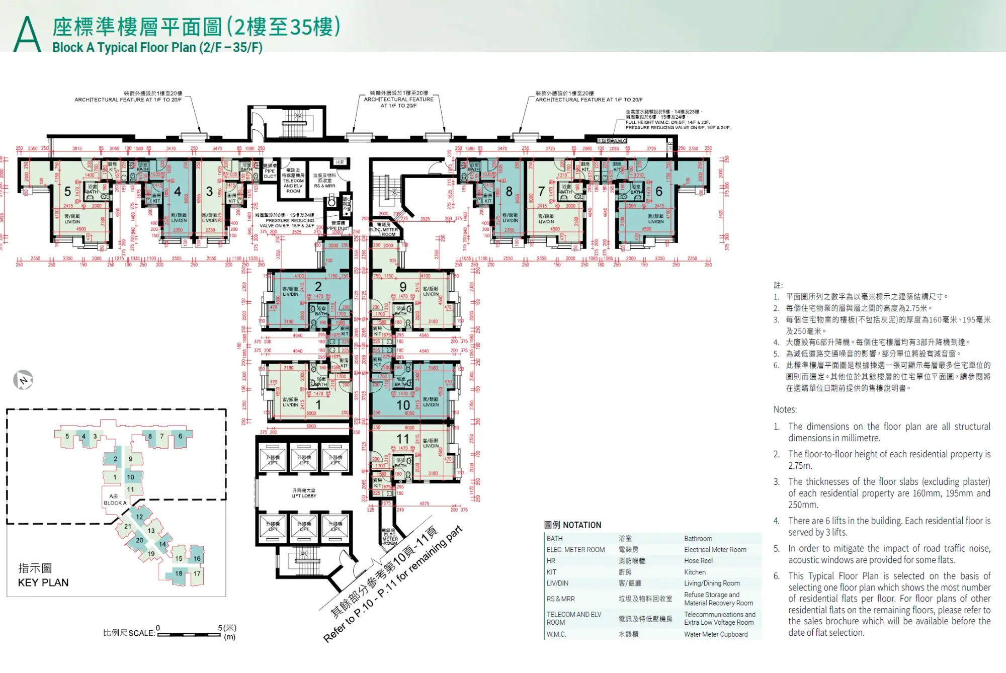 樓高 | A座41層、B座37層、C座38層(不計地下及非住宅樓層) |