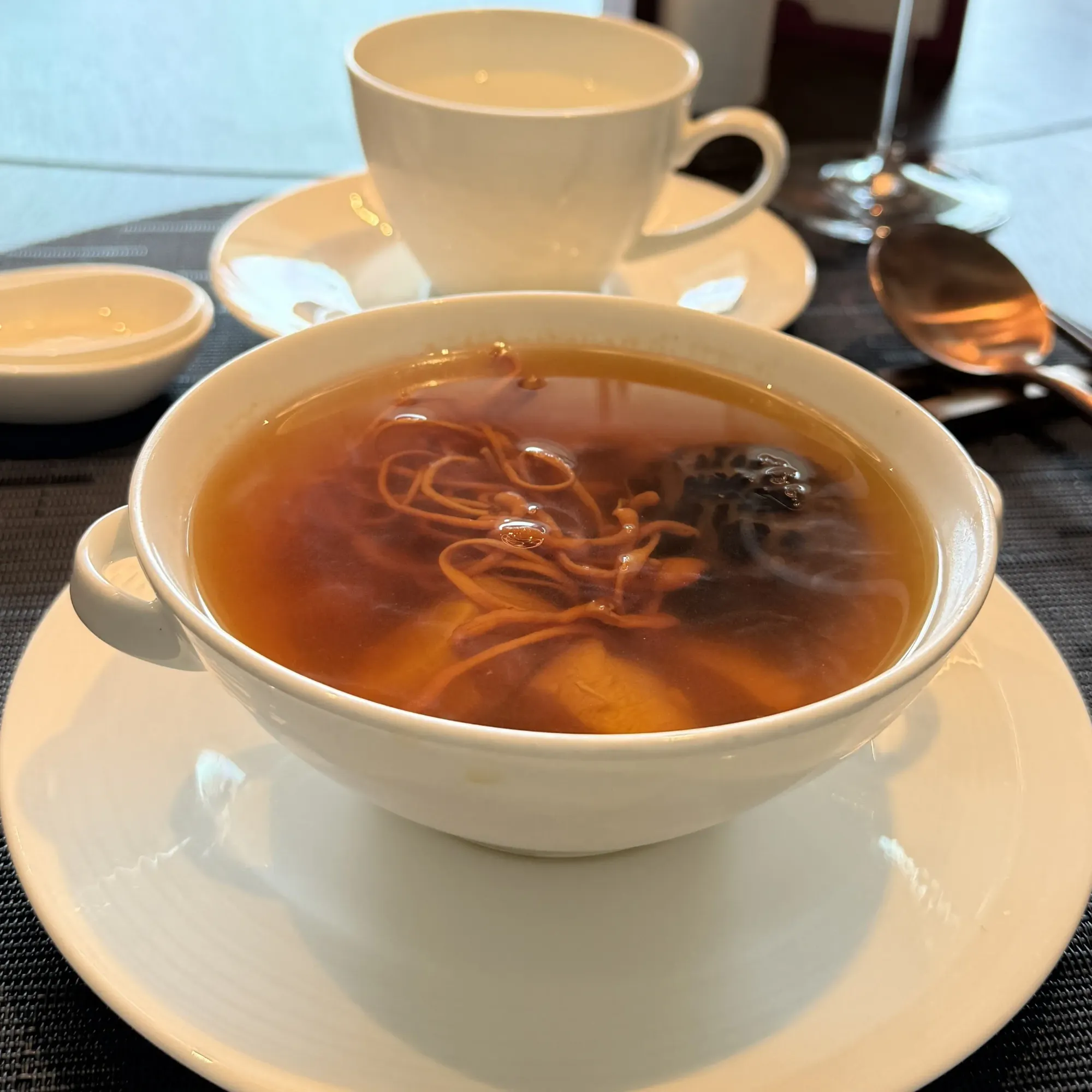 • 🍲 蟲草花花菇柱脯螺頭燉雞湯:湯底濃而不膩,滋補到不行!