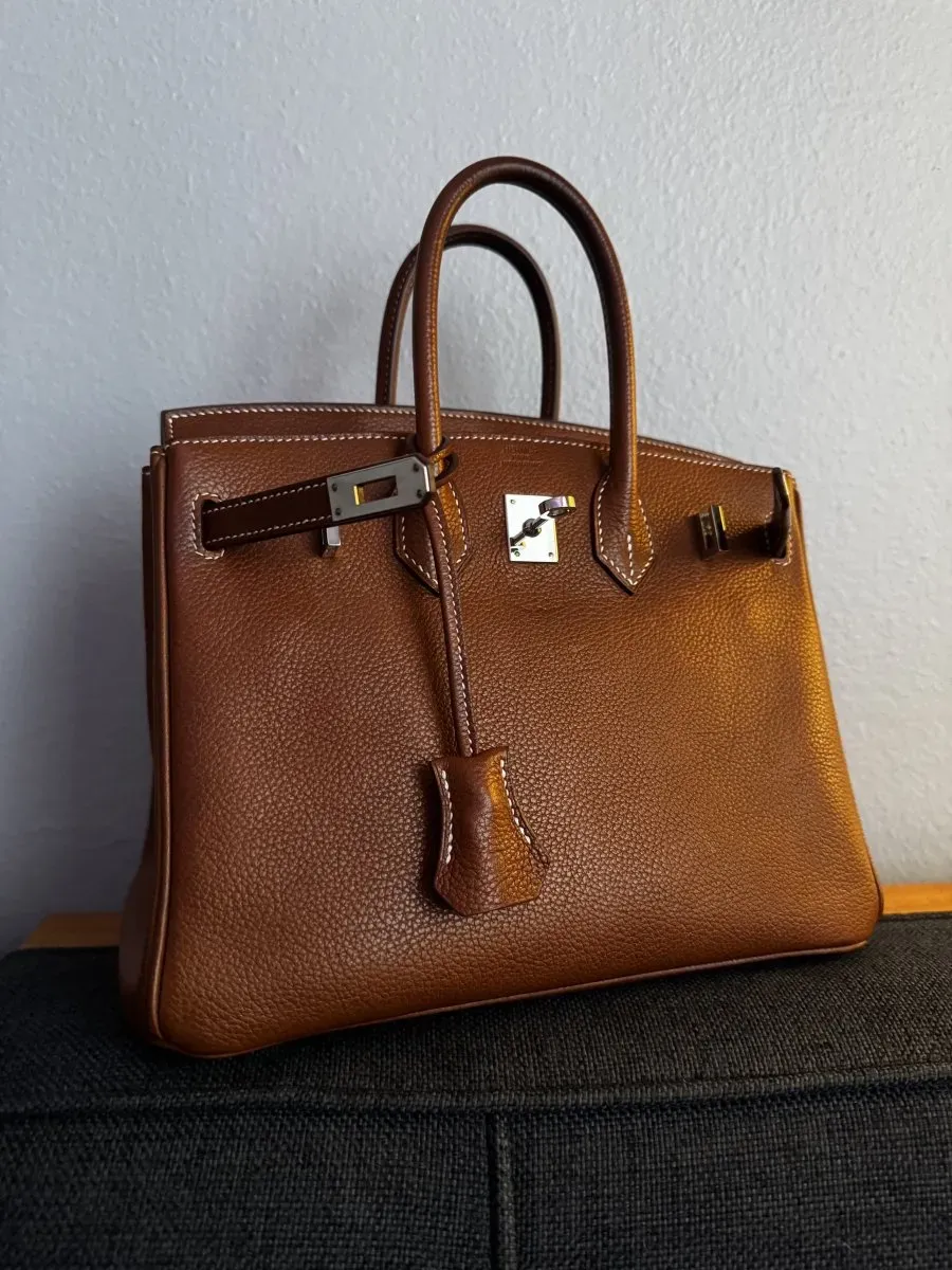 有用家分享手袋於濕水前後約一小時嘅實際情況,並指出在需要正式穿搭且遇上雨天時,會優先選用呢個已使用約三年嘅 Barenia Faubourg Birkin 25。整體對其耐用性表示滿意,亦反映對日常濕水情況具一定信心。