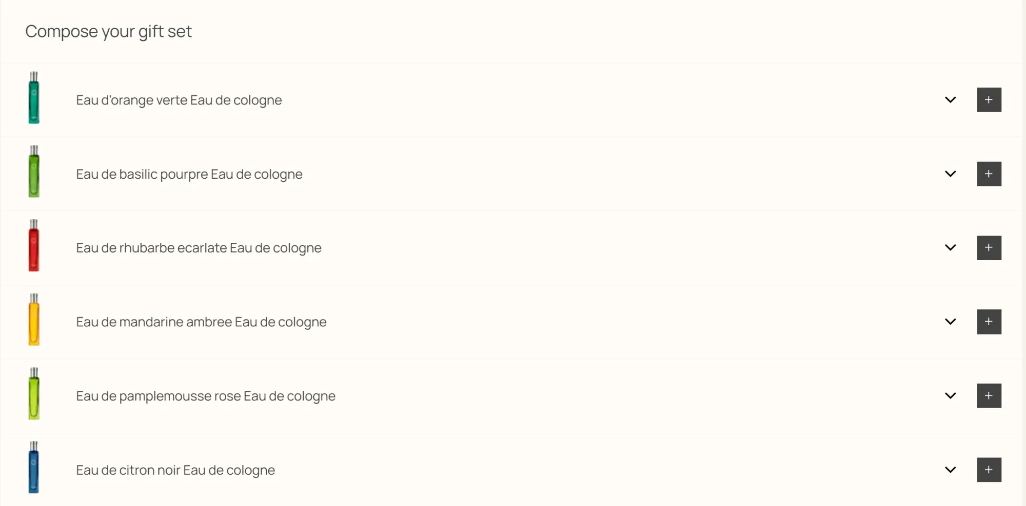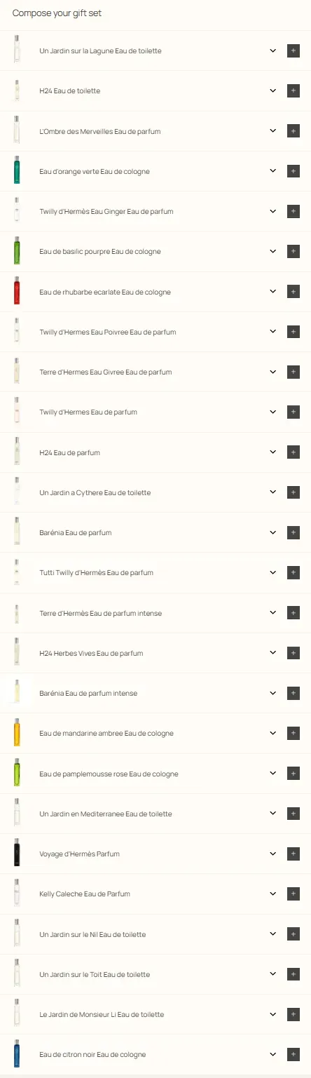 Hermès Compose your own set of 4 Colognes。(資料來源: Hermès官方網站)