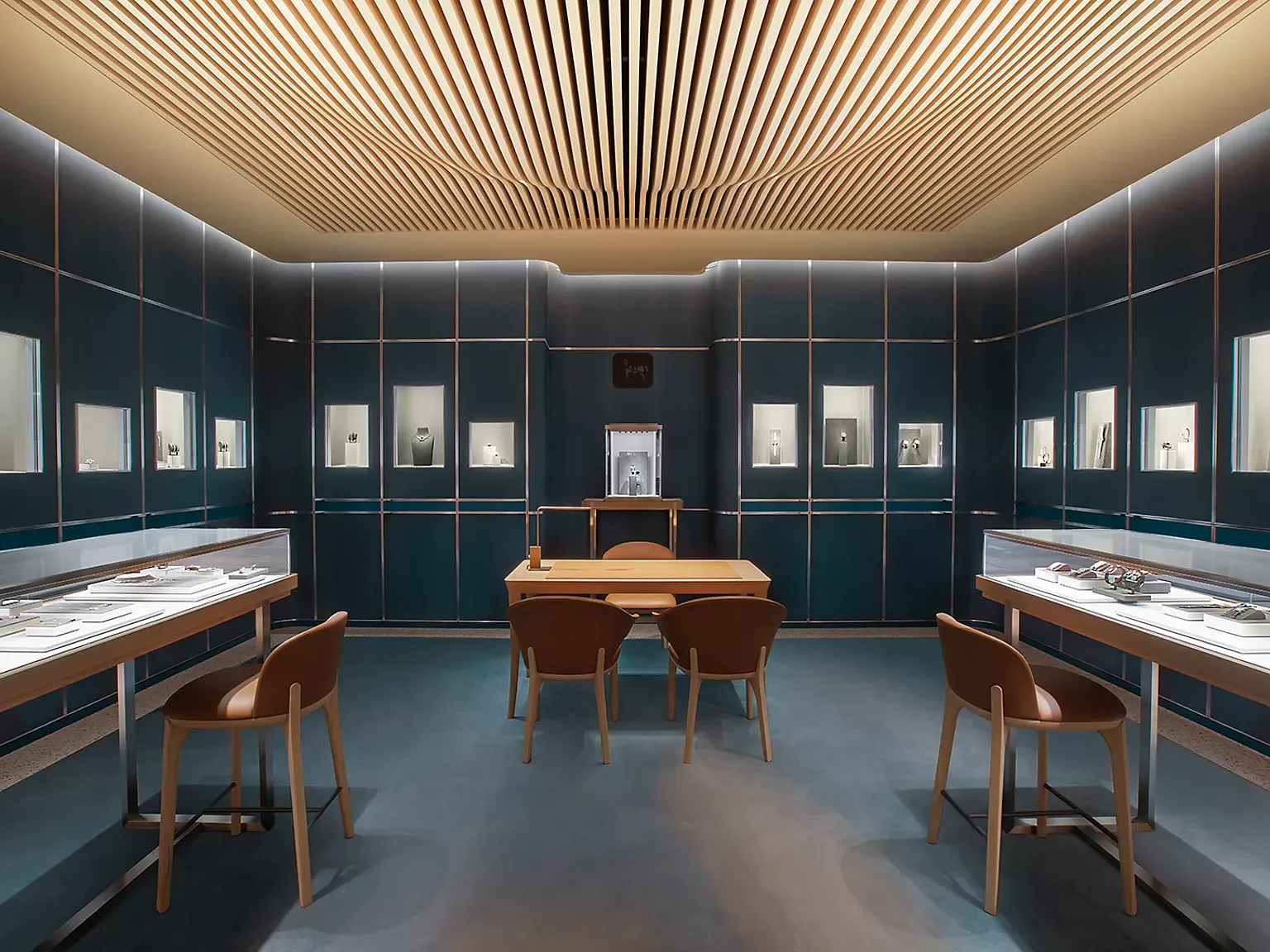 走入店內,室內設計嘅靈感主要源自中國傳統嘅「五行」概念。空間內部運用咗大量與自然元素相關嘅色調作為主軸,配合幾何網格狀嘅天花板設計以及帶有豐富質感嘅牆身。RDAI 透過精確嘅空間規劃同建築細節,將各項設計元素和諧地融合喺一齊,為擴充後嘅店面注入全新嘅生命力與活力。