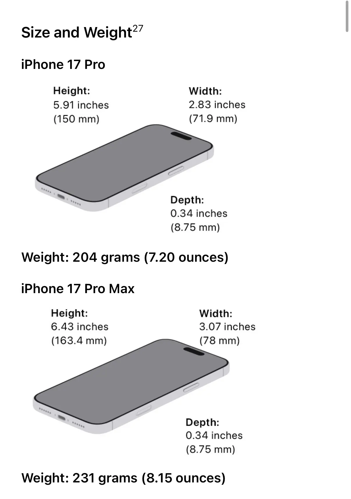 Apple剛發表iPhone Air及iPhone 17系列尺寸。(資料來源:Apple官方網站)