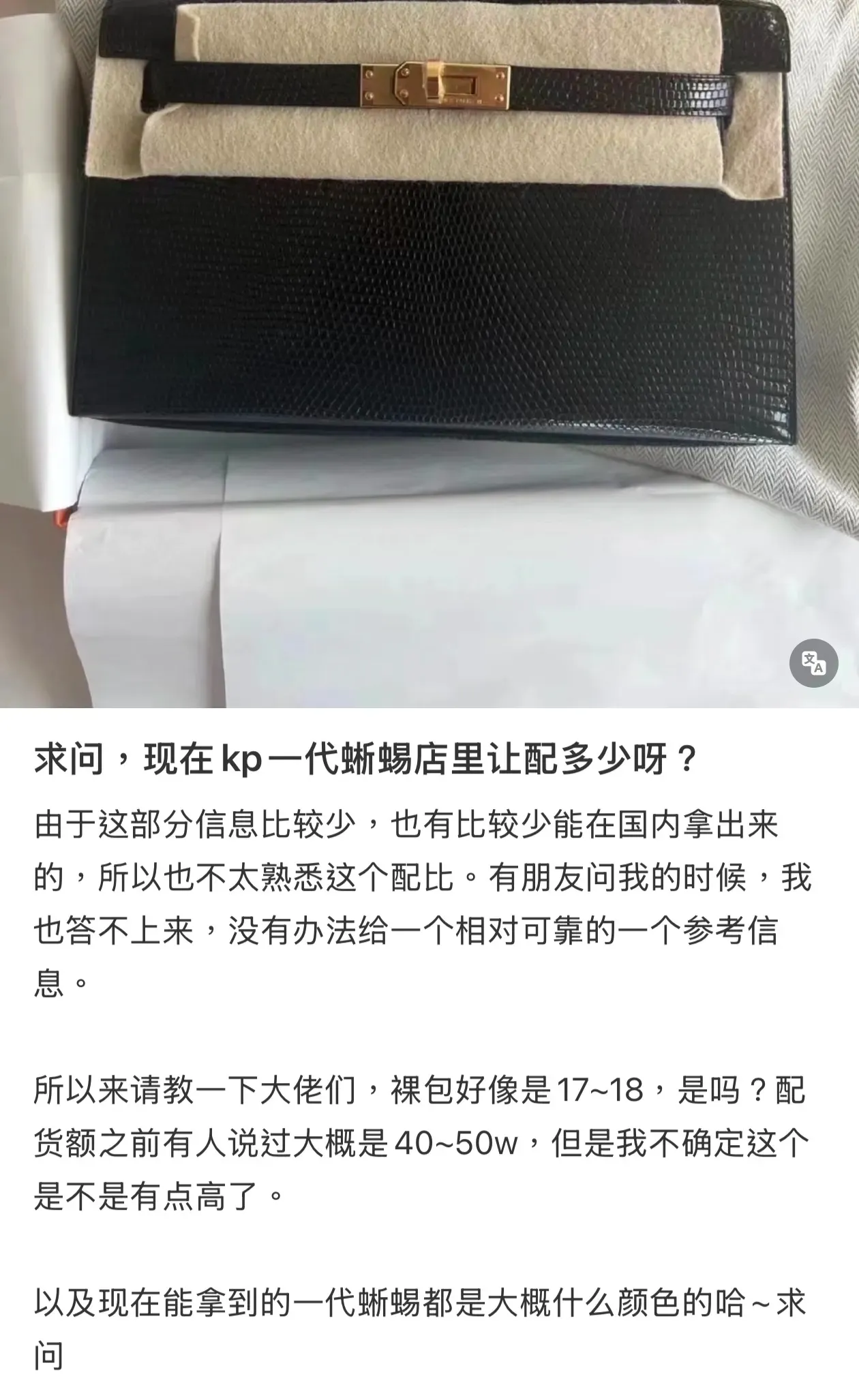 各地網民Hermès Kelly Pochette蜥蜴皮分享Post。(資料來源:社交平台)