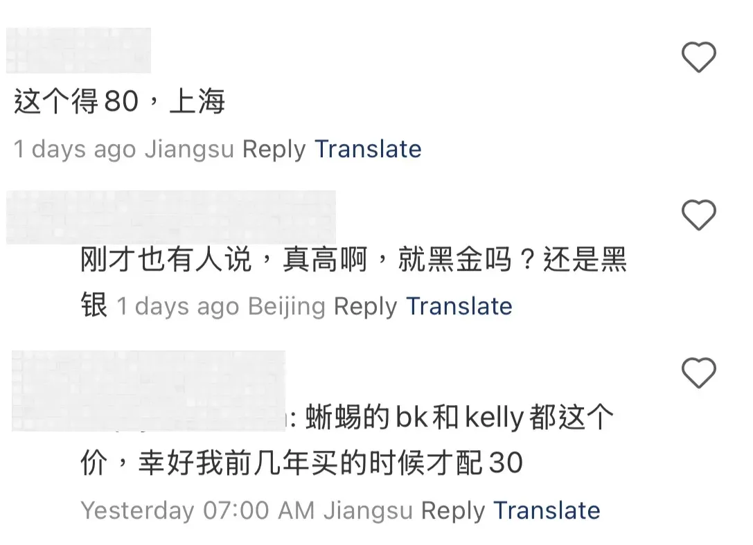| 北京 | 約 RMB17–18萬 | 約 RMB50萬 | 約 RMB65萬 | 黑色蜥蜴皮 + 金扣 |