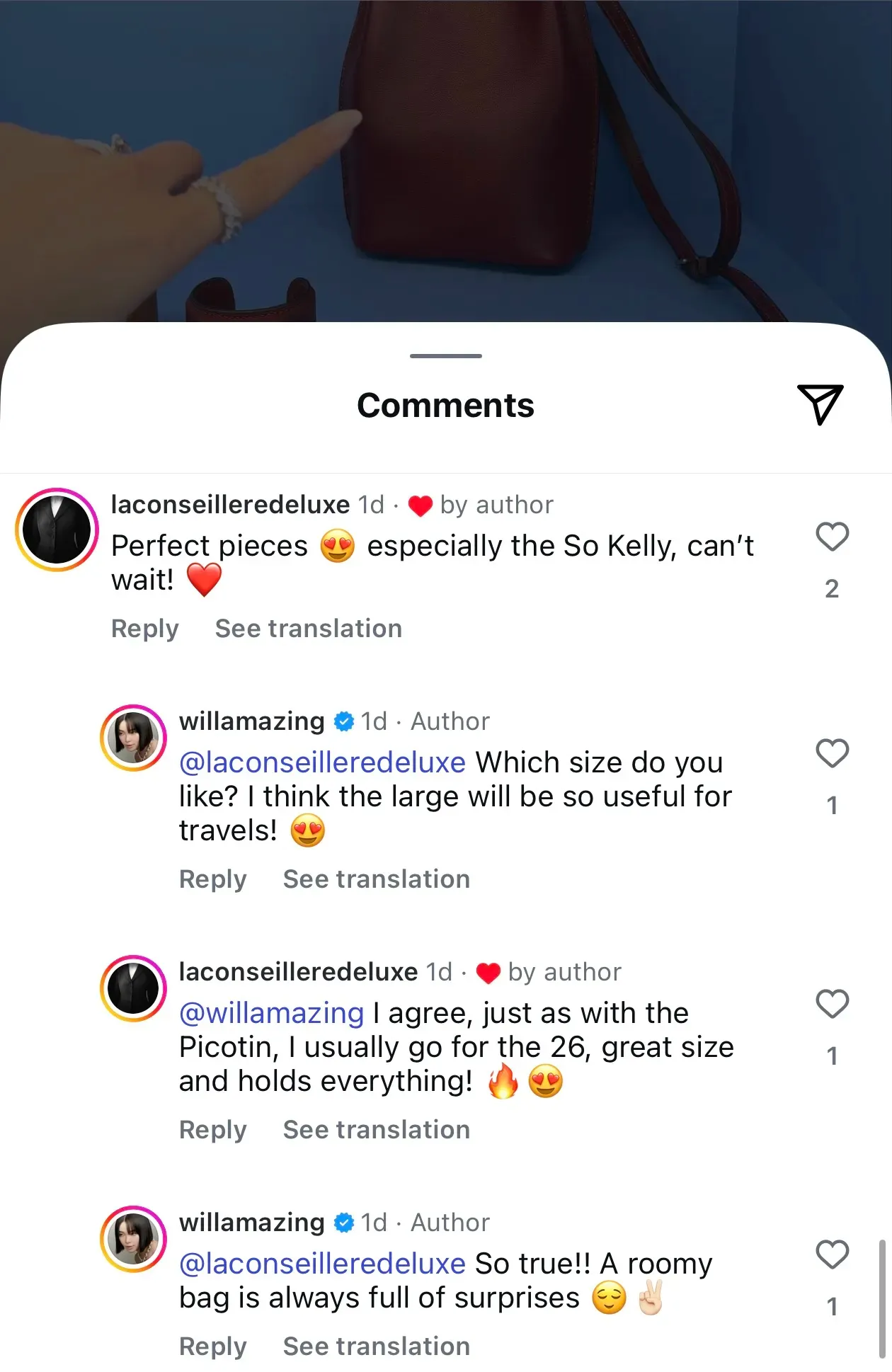 Hermès so kelly獲不少網民留言表示鐘意。(資料來源:社交媒體)