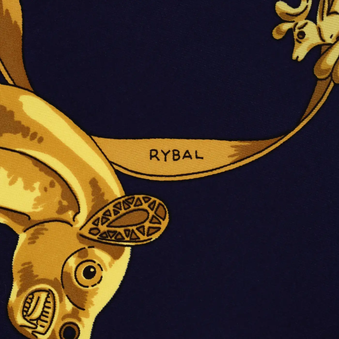 隨住 Hermès 絲巾設計逐漸發展,不少藝術家會喺圖案之中加入自己嘅簽名,而且各自有不同形式。例如設計《Cavaliers d’Or》(1975)嘅 Vladimir Rybaltchenko,通常會以「Rybal」作為簽名。