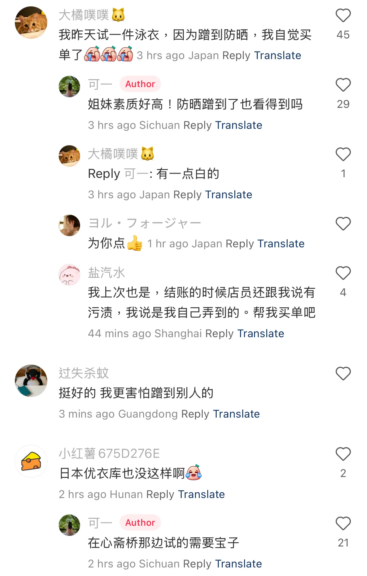 - 🩱 有人分享試泳衣時蹭到防曬,自覺買單,仲話防曬痕跡有啲白印,睇得出。