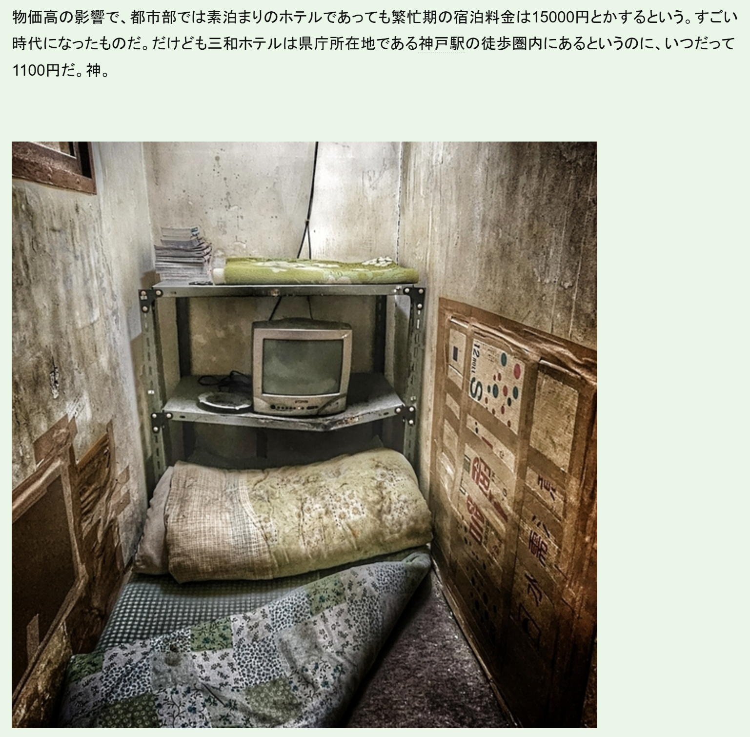 神戶三和酒店房間如地牢,骯髒到想喊。(資料來源:社交媒體)