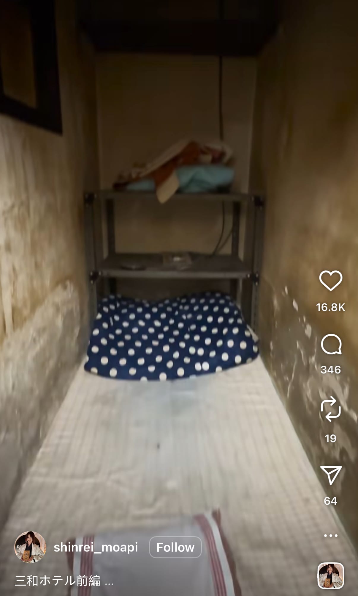 - 細到離譜:《NHK》指,房間得1畳(約1.65平方米),全鋪薄床褥,似「公廁單間縮水版」,空間狹窄到轉身都難!