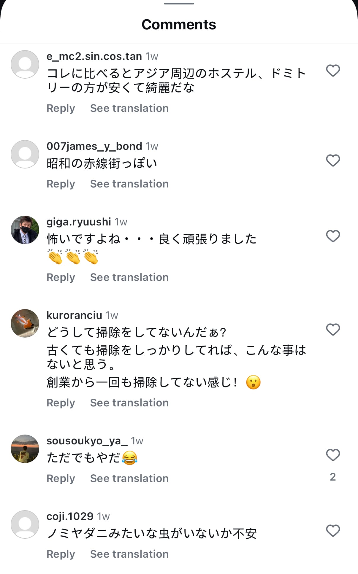 - 心理煎熬:《朝日新聞》指,怪味、住客走動聲同陰森環境,夜晚似「困喺黑暗迷宮」,心跳到凌晨3點,捱到朝早7點見日出,身痛頭暈但好似「打贏怪獸」咁自豪!