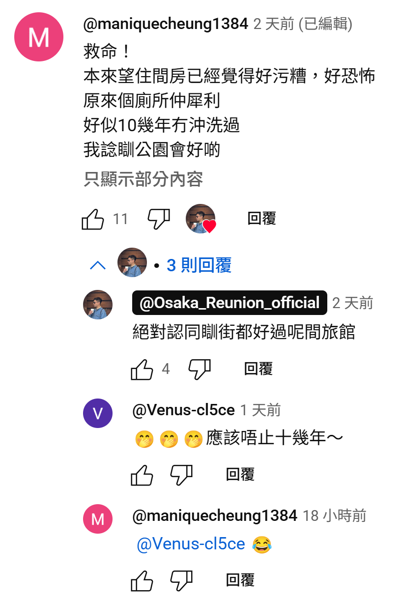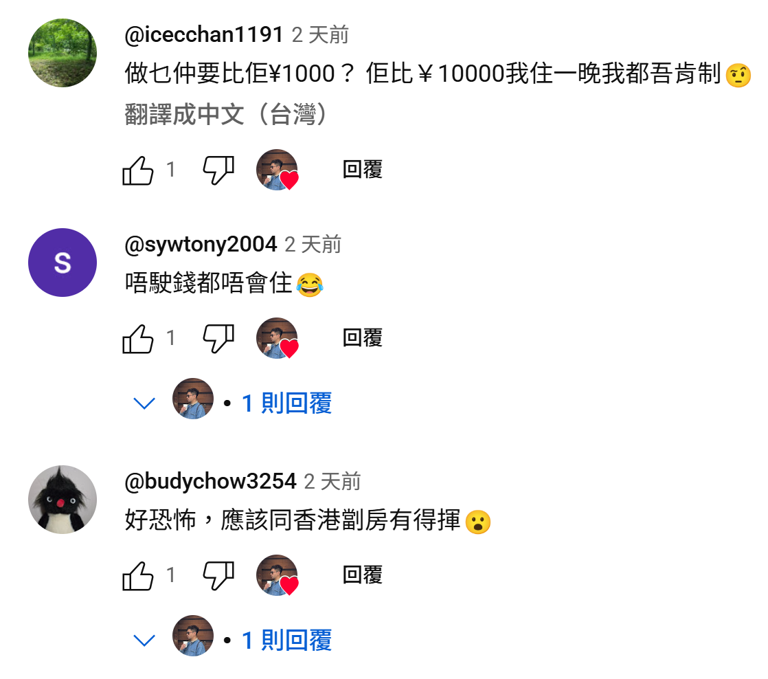 香港網民睇完三和酒店影片後反應強烈,紛紛留言表示「食唔落早餐」、「全身痕」、「懷疑人生」,仲有人形容酒店似「Silent Hill」或「地獄入口」,直言「瞓街都好過」。最震撼嘅係:估唔到日本竟然有咁嘅地方,唔駛錢都唔會住!有人話廁所似十幾年冇沖洗過,床褥污漬令人反胃,環境勁恐怖,簡直係精神挑戰。雖然留言中夾雜笑聲,但背後其實係對貧窮、社會邊緣人嘅深層反思。一句講晒:佩服你拍得出,亦佩服有人住得落!