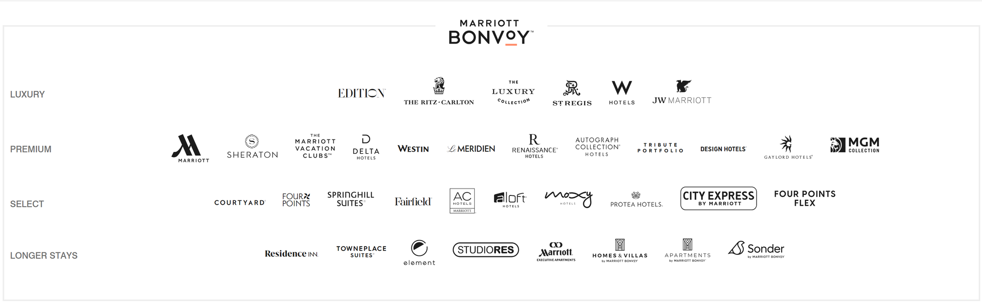 Marriott Bonvoy 萬豪旅享家會員等級及優惠。(資料來源:Marriott官方網站)