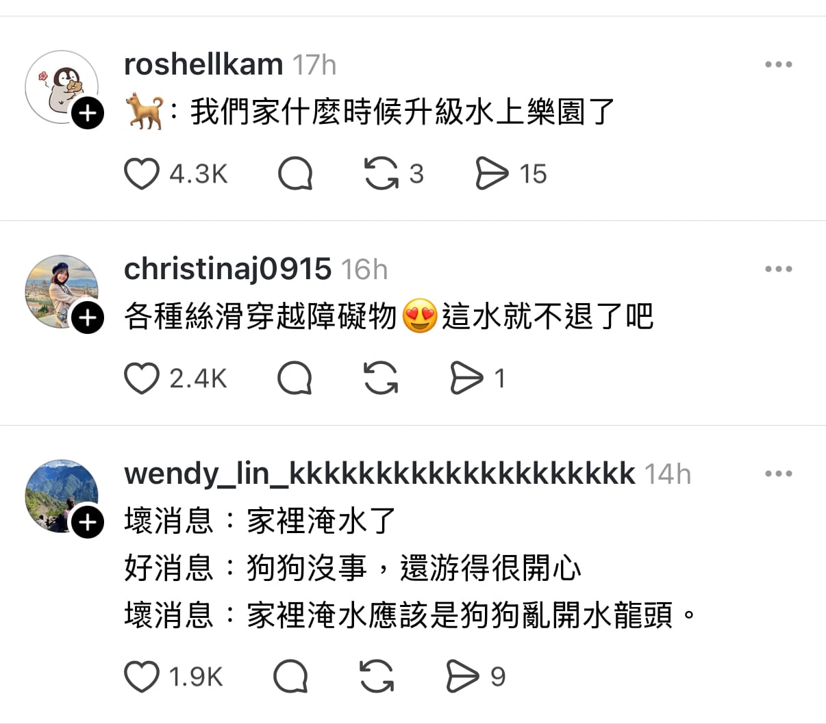 網民爆笑回應狗狗開泳池派對。(資料來源:Threads)