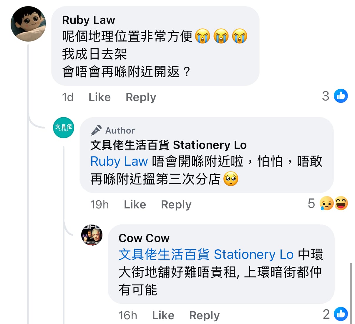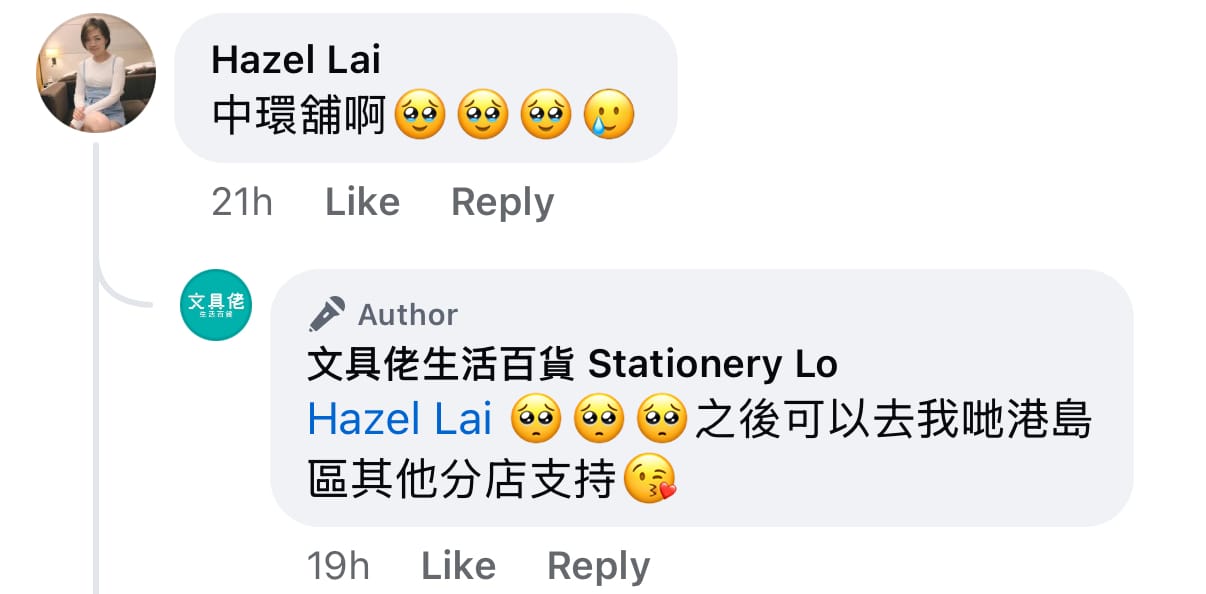📰 文具佬中環分店結業網民留言。。(資料來源:文具佬@Facebook)