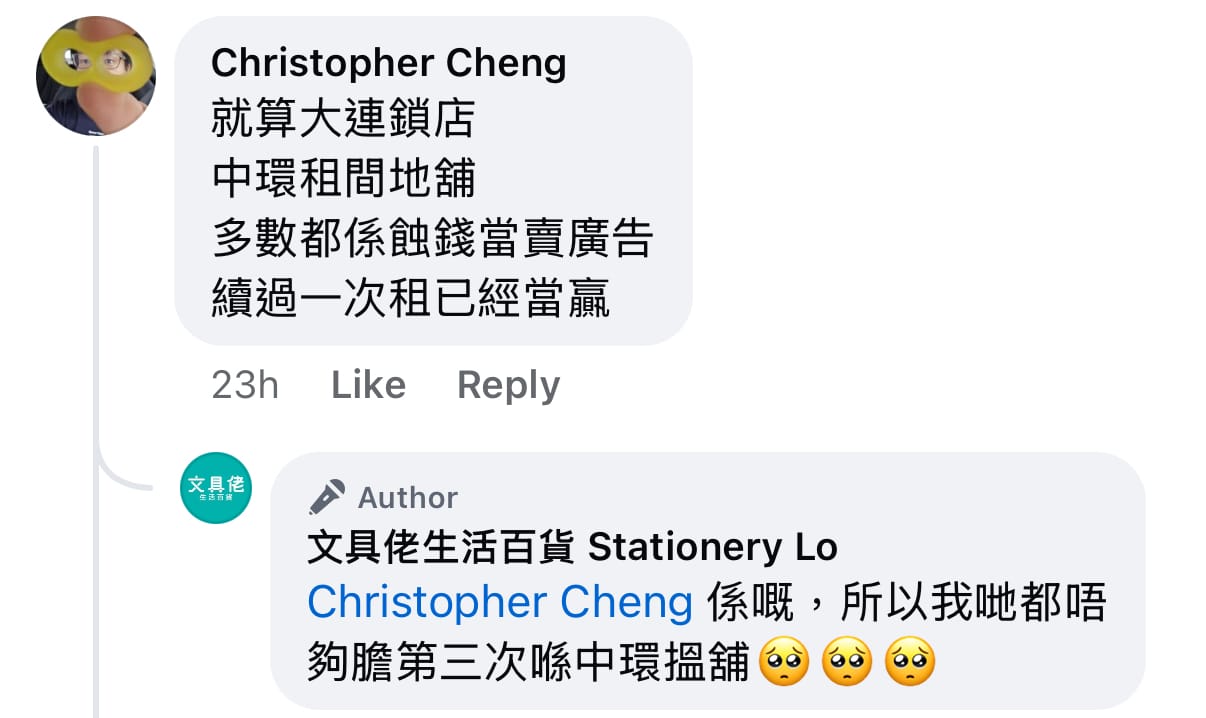 - 🔁 短租模式風險高:每次兩年租約期滿就要重新裝修、搬遷,成本高昂,文具佬表示「條數計唔掂」,不再考慮於中環另覓新舖。
