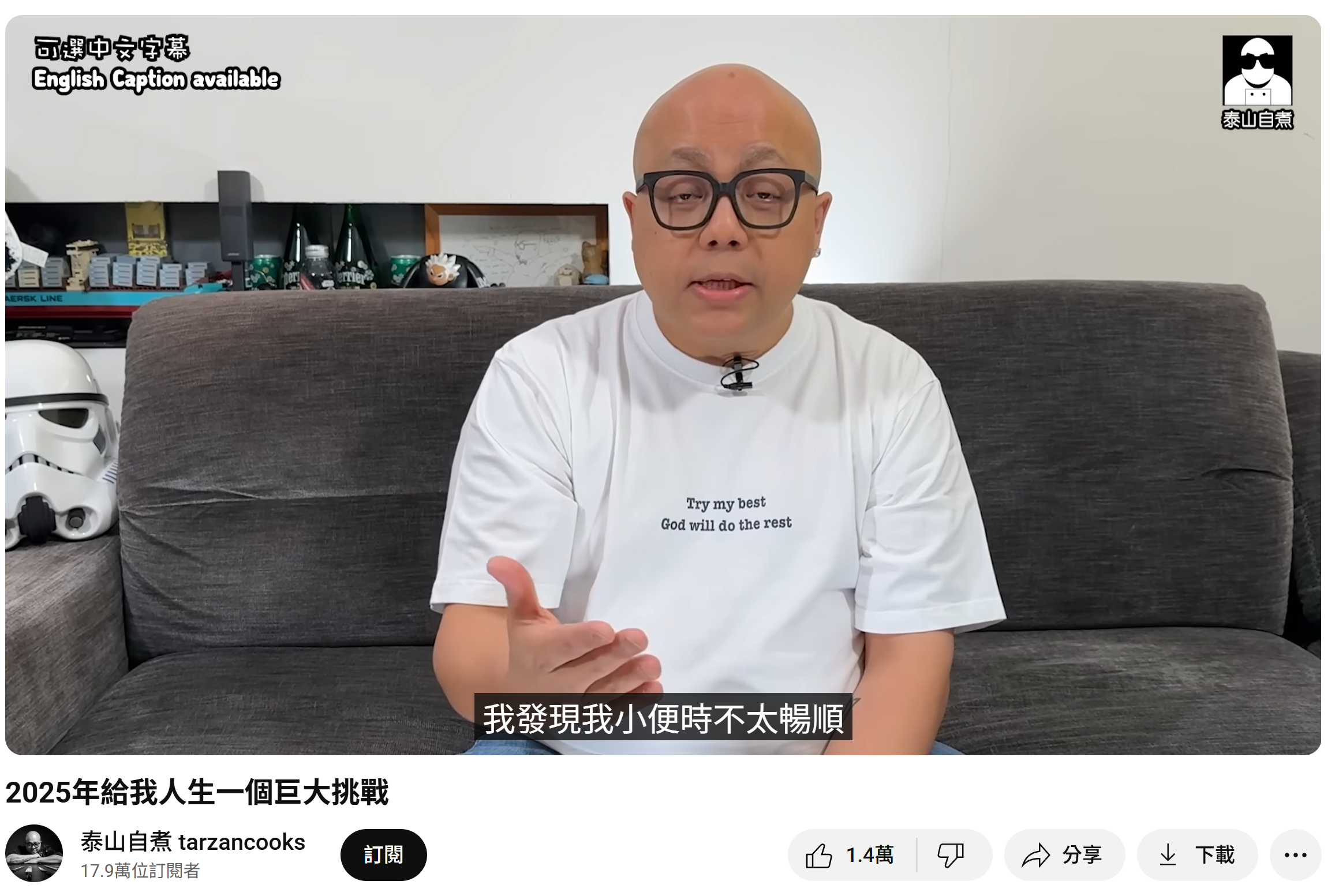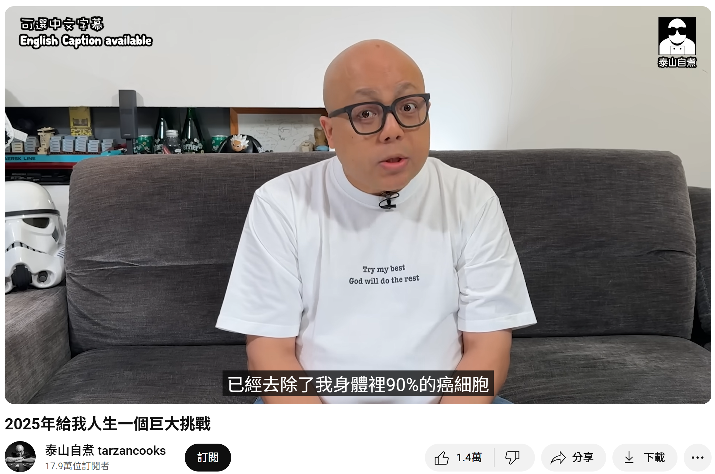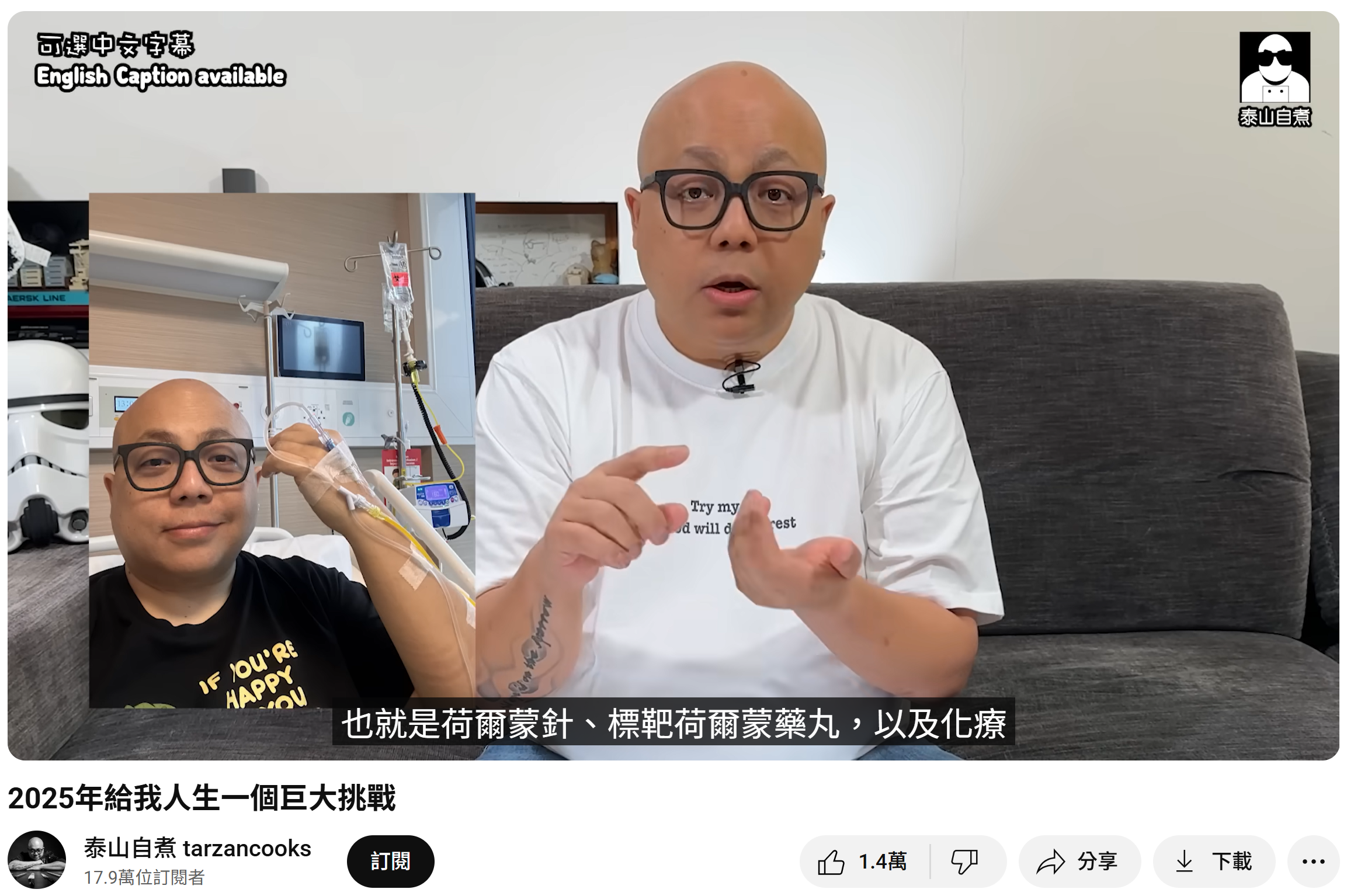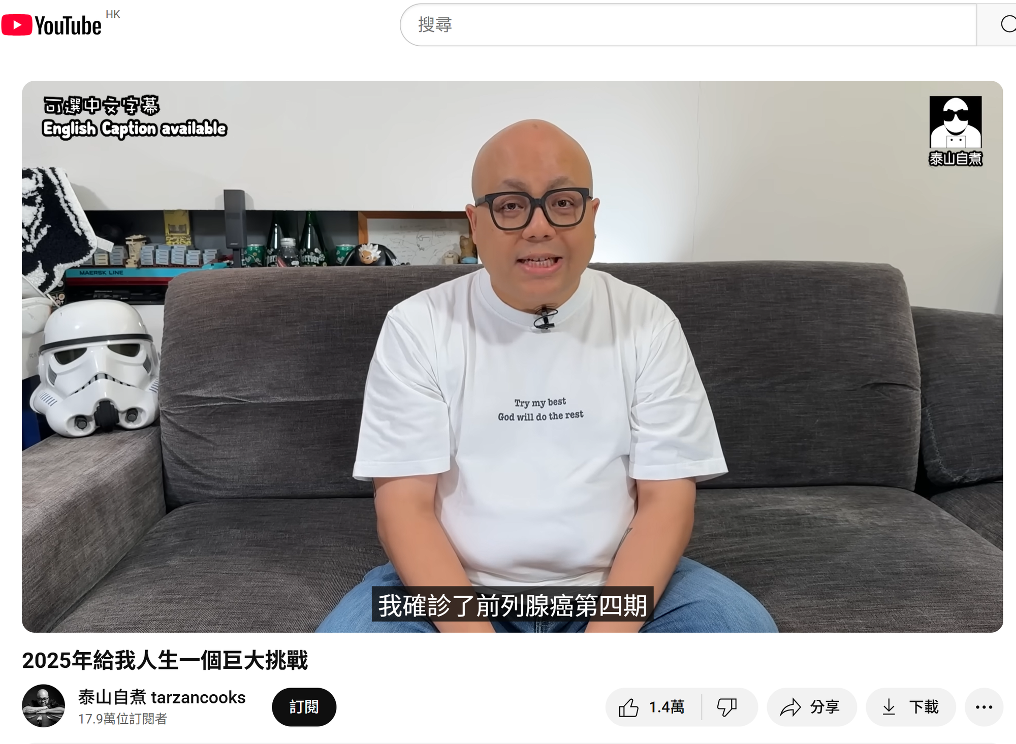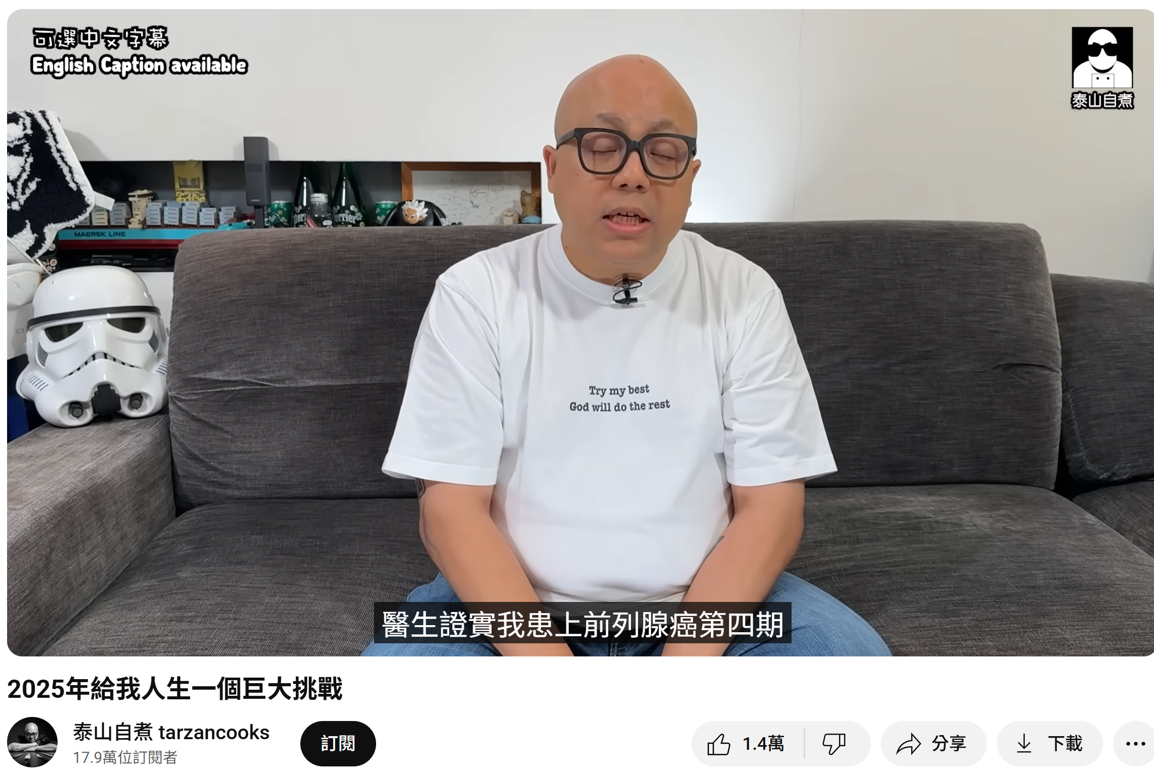 商台DJ泰山(曾匡民)近日喺YouTube影片中親自公布患上前列腺癌第四期。(資料來源:泰山自主@YouTube)