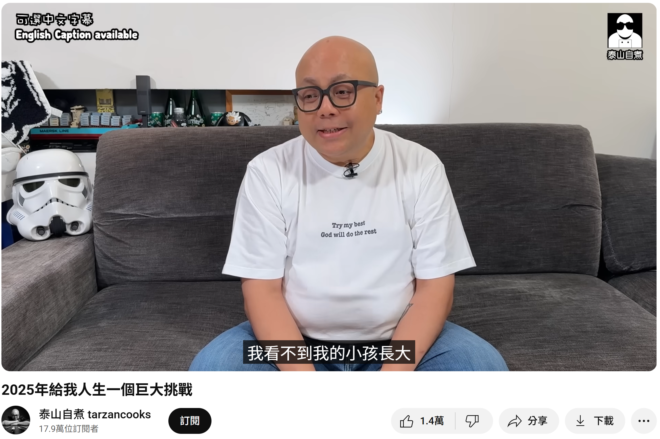 • 泰山患病期間創作停頓,YouTube頻道停更,工作量大減• 佢親口講:「最唔捨得屋企人……如果我走咗,邊個教小朋友?照顧太太?」