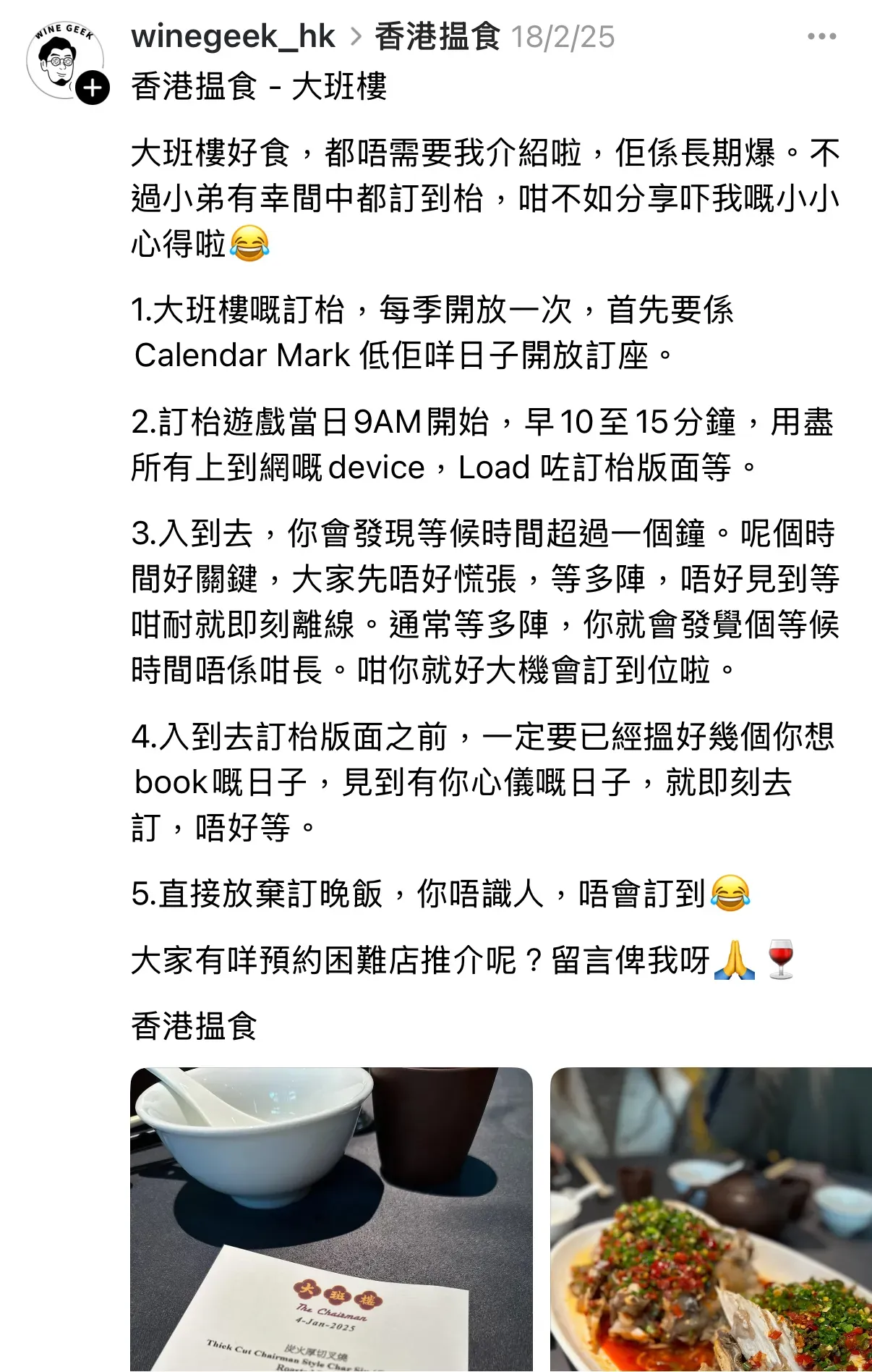 你有冇試過為咗一餐飯,凌晨四點爬起身同網站「搏鬥」?😴 大班樓(The Chairman)被譽為「全港最難訂」嘅中菜廳,唔單止係米芝蓮一星名店,仲喺「世界50最佳餐廳」排第26位、「亞洲50最佳」排第2!🌟
