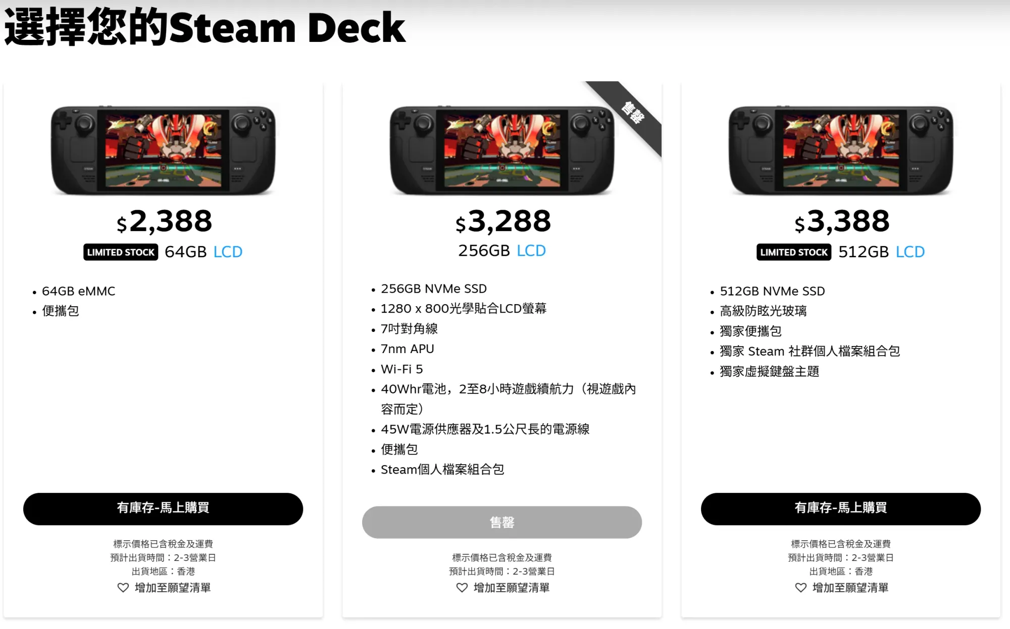 STEAM DECK價格由$2388起。KOMODO STATION代理日韓港台推出Valve Steam硬體。(資料來源:Komodo官方網站)