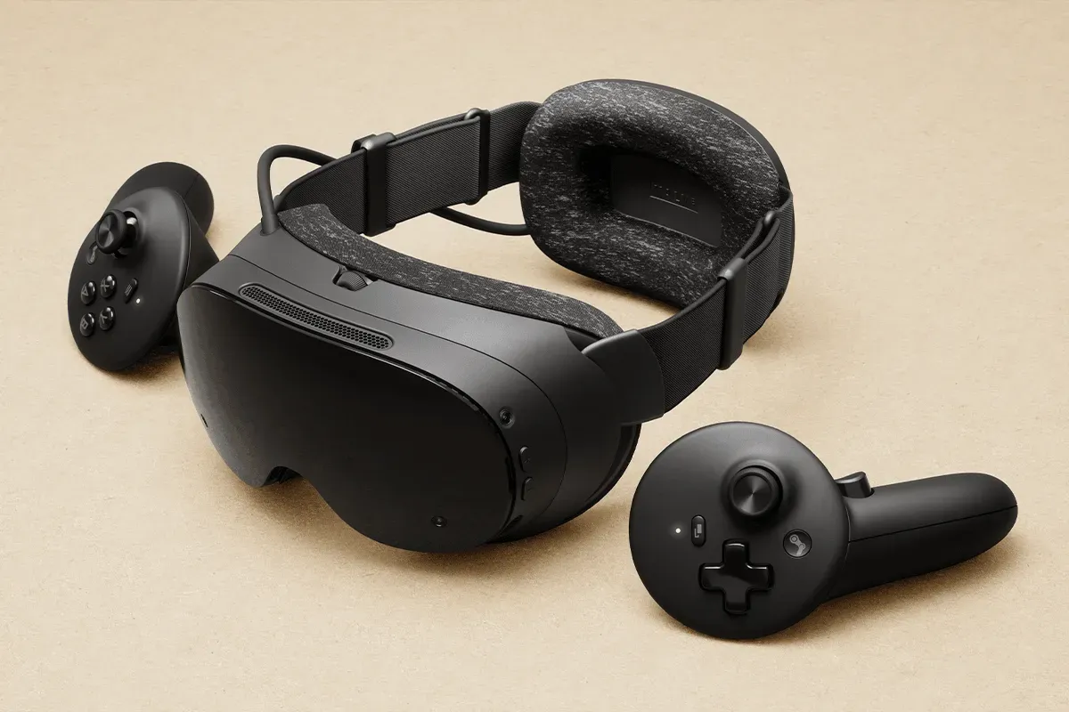 無線 VR 頭顯(代號 Deckard,總重 440g),支援獨立運行同串流,配 Snapdragon 8 Gen 3,運行 SteamOS。自 2019 年開發,支援 VR/非 VR 遊戲,本地/串流模式。