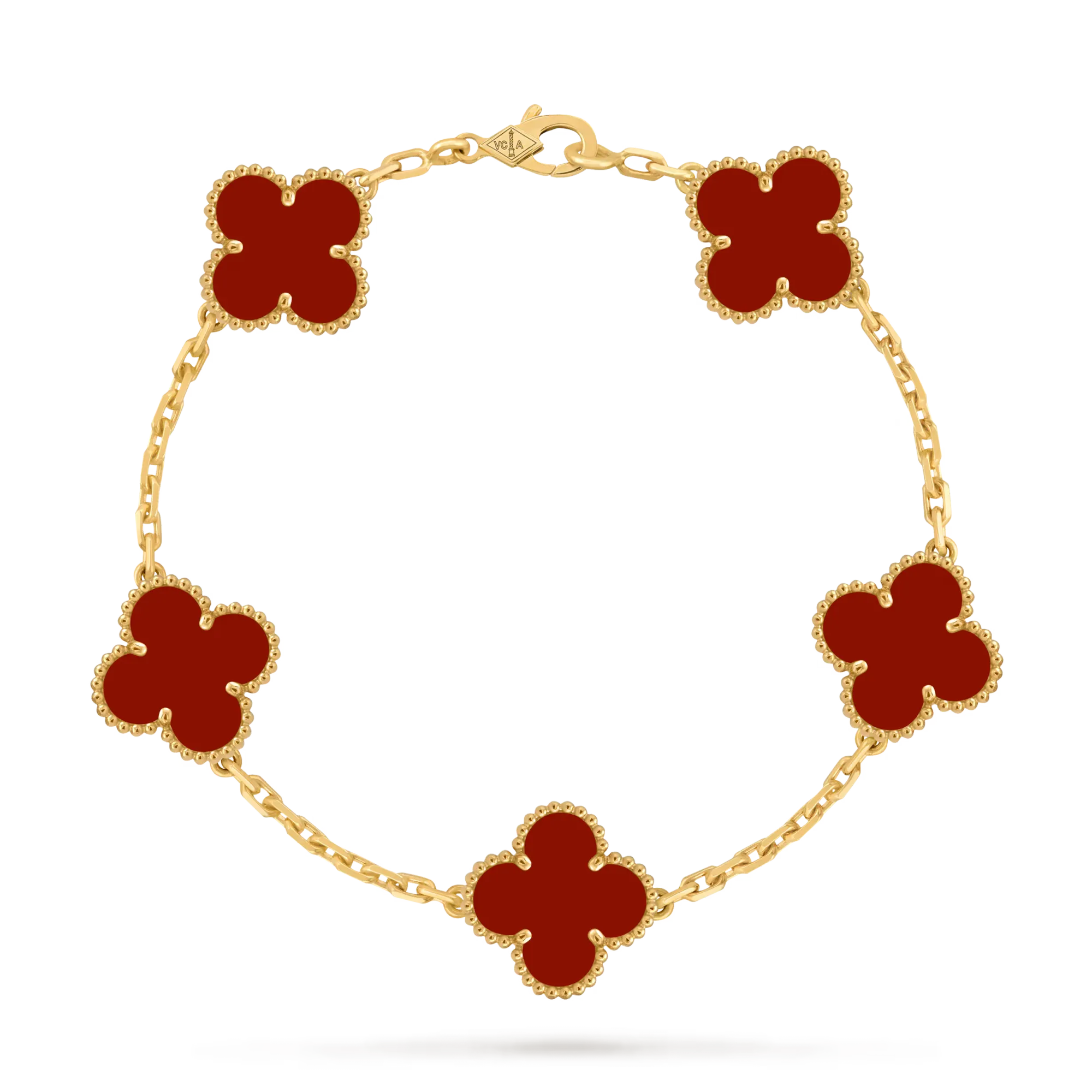 Vintage Alhambra 手鏈,5 枚四葉幸運圖案,18K 黃金配紅玉髓