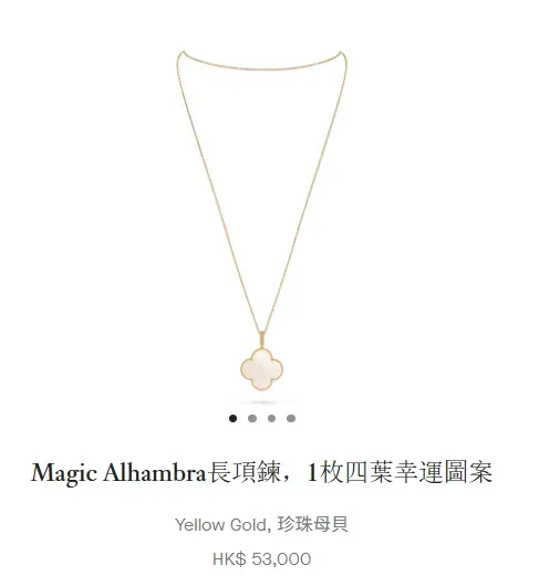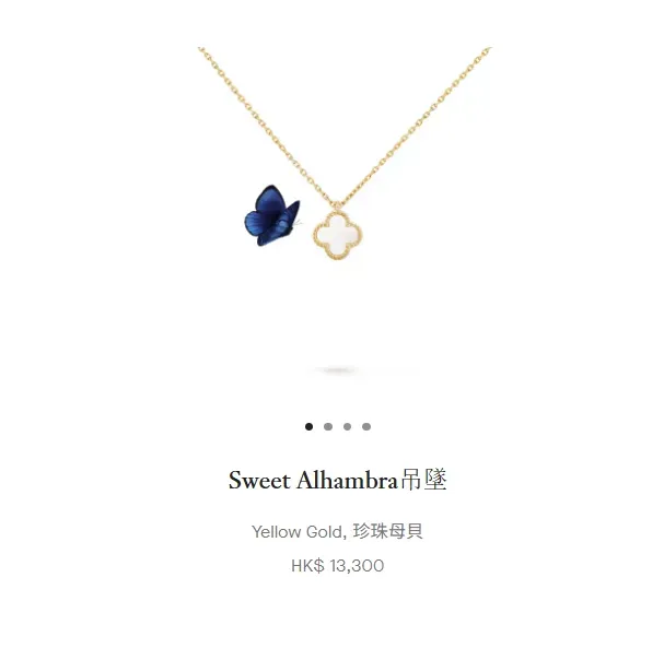 Sweet Alhambra 珍珠母貝吊墜,Van Cleef & Arpels 官網價格。