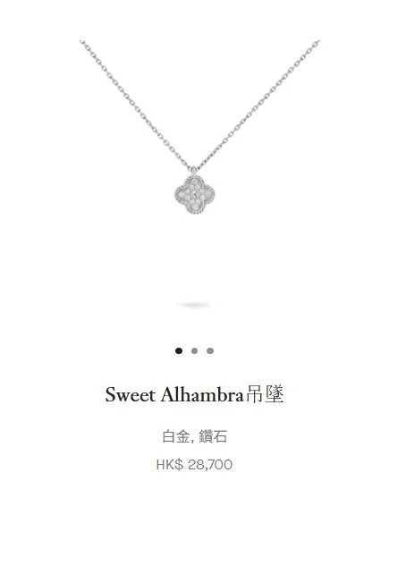 Sweet Alhambra吊墜(白金・鑽石),Van Cleef & Arpels 官網價格。