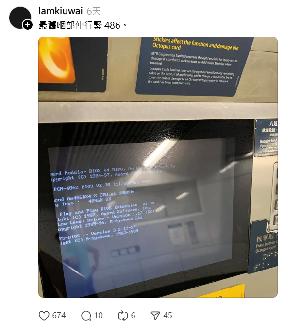 有網民直擊最古老增值機,竟然仲用緊 486 處理器!呢啲 1980 年代尾出嘅技術,簡直係電腦界嘅化石級珍藏!