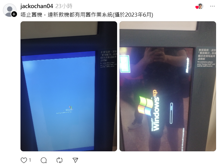 Windows XP 雖然比 95 新,但早喺2014年就正式退休;估唔到2023年仲有增值機靠佢運作!