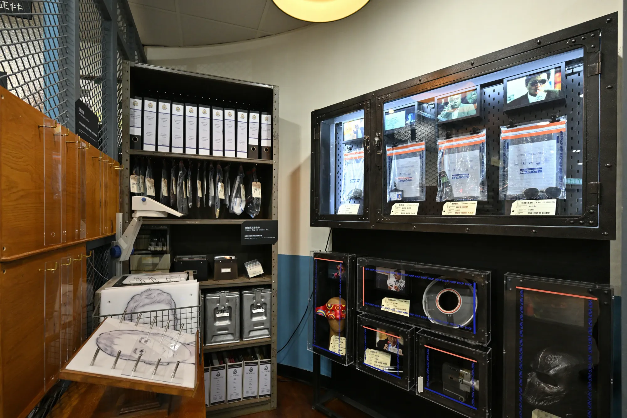 證物房展出多套港產警匪電影曾使用或仿製的道具,並重現《無間道》等作品的經典場面。