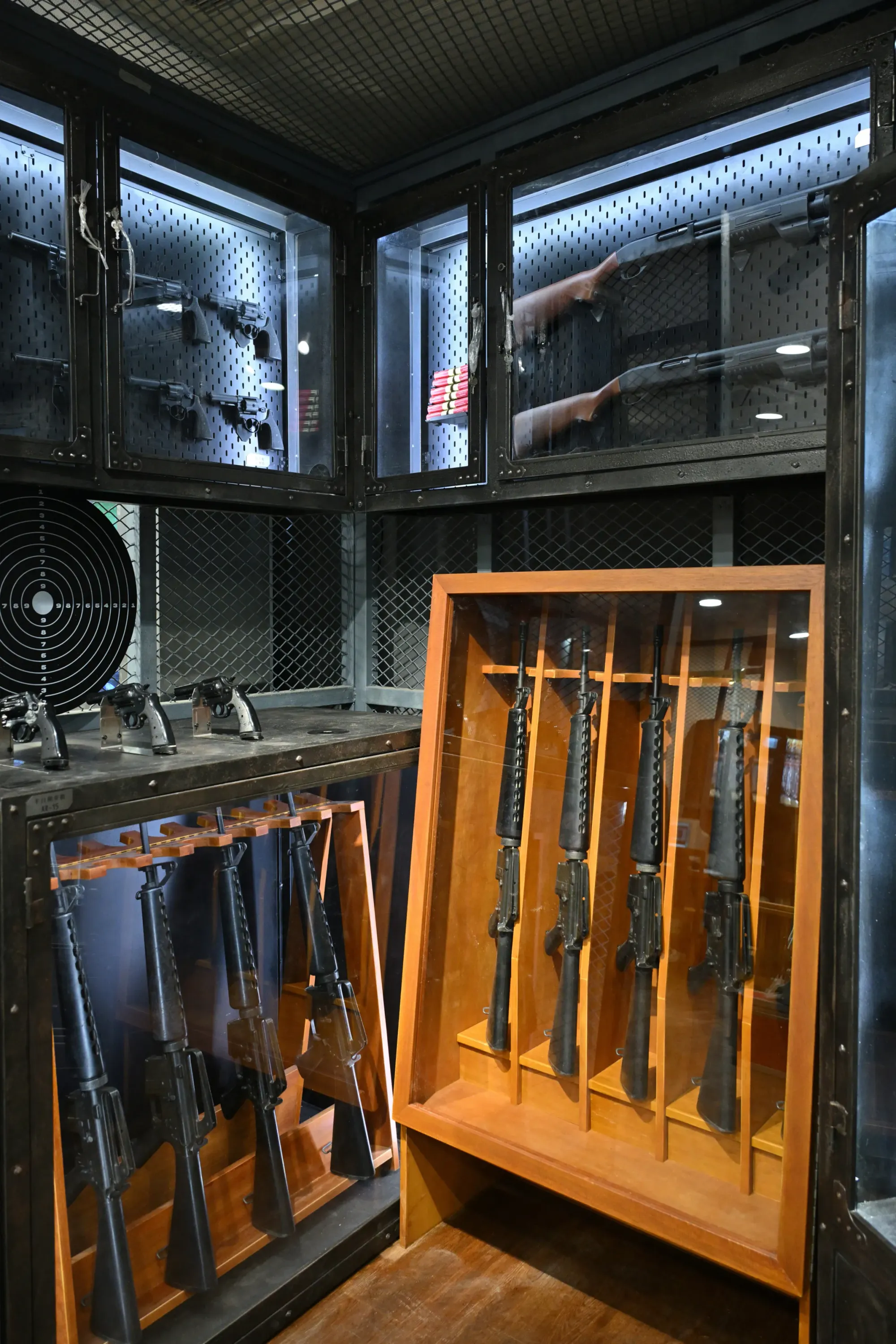 辦公室、證物房、槍房、認人室、監控室等元素同時存在,形成一個「似真非真」的電影化警署。