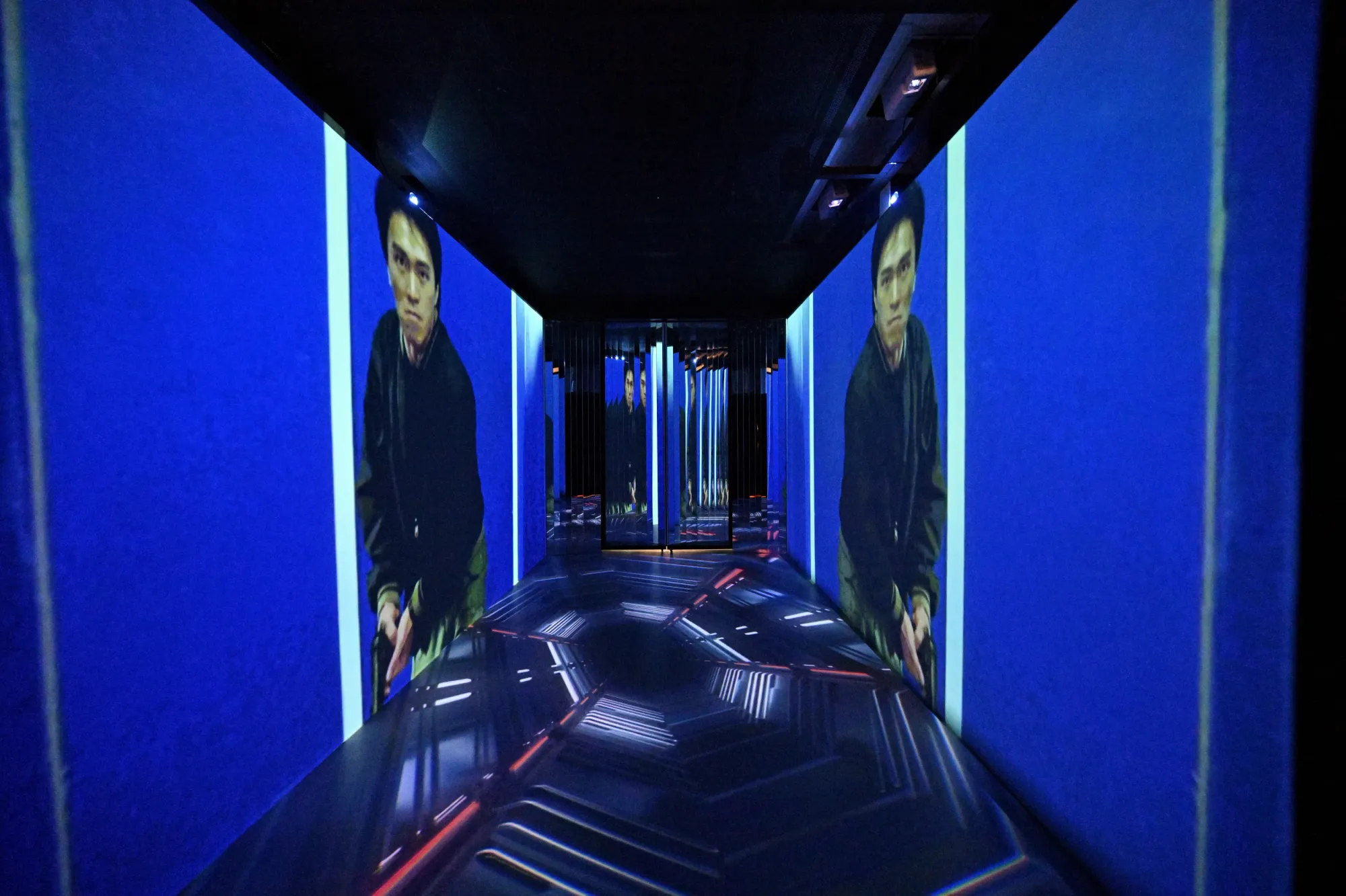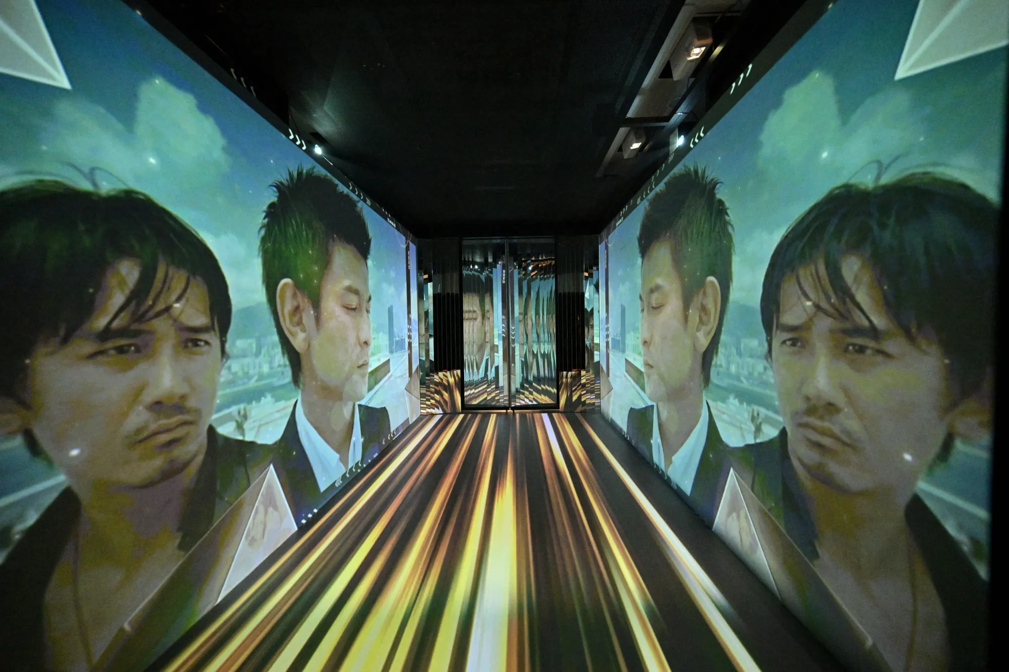 穿過入口後,訪客會進入一條「時光隧道」。呢度並唔係逐套電影介紹,而係利用剪接影像、聲效與燈光,呈現港產警匪片一貫嘅速度感與張力。