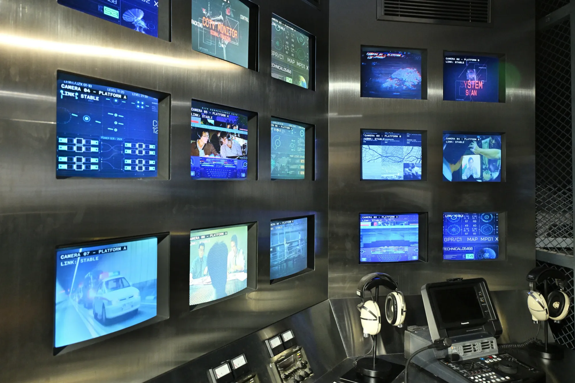 由戲院入口進入警署空間,本身就形成一個心理轉換:由現實城市,過渡到電影世界,亦為之後嘅沉浸式體驗鋪路。